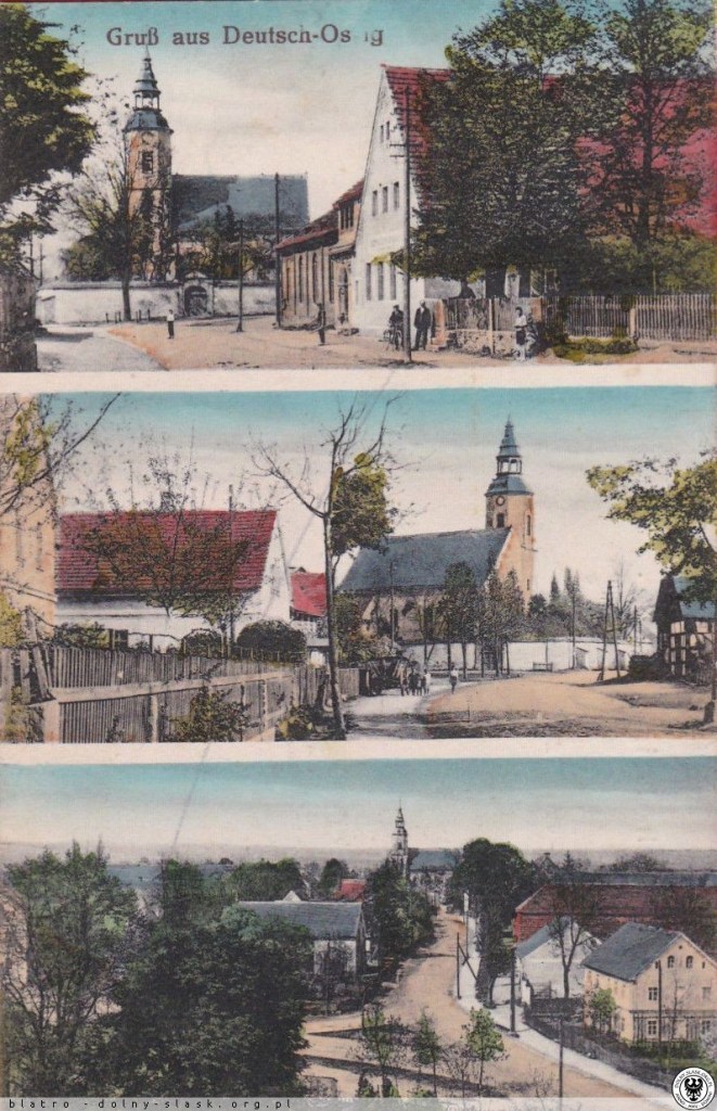Wieś była to wiekowa bo wzmianki o niej pochodzą już z XIV wieku a badania archeologiczne cofają nas jeszcze dalej, najpierw do romańskiego kościółka z XIII stulecia a potem do pochówków z nim związanych z lat jeszcze wcześniejszych! O tym, że była ona też całkiem znaczną w okolicy niech świadczy fakt, że w XVI wieku potrzeba było interwencji króla czeskiego, Ferdynanda I, który to to podzielił wieś na trzy osobne twory, Deutsch Ossig Górny, Dolny i Środkowy. Każdy z własnym dworkiem, folwarkiem. Poważna sprawa…