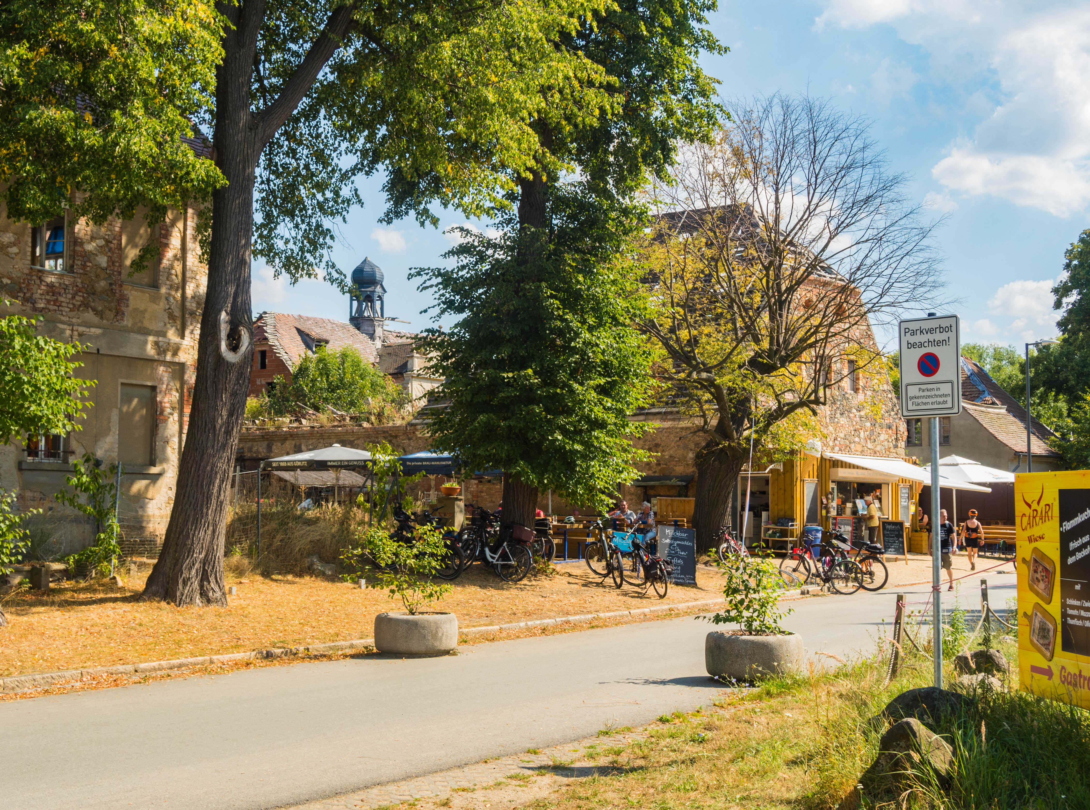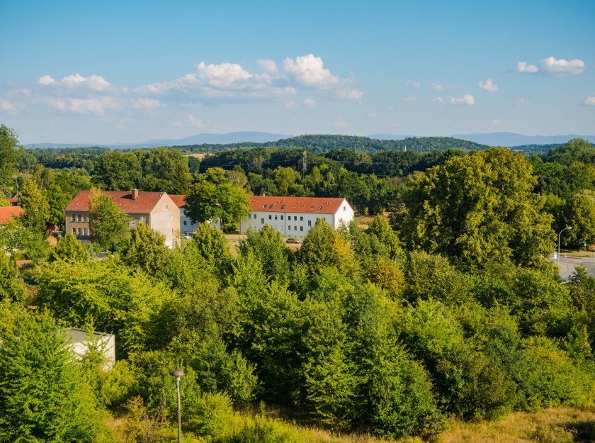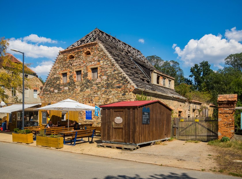 Setki lat historii, zabytkowe budynki, barokowy kościół (jako jeden z nielicznych doczekał się wiernej odbudowy w dzielnicy Königshufen), szkieletowe domy szachulcowe, kręgielnia, przeróżne zakłady, szkoła, budynek straży pożarnej… Większości już nie ma, pochłonęła je kopalnia, która krótko potem sama wyzionęła ducha. Dziś w opuszczonej, naznaczonej opuszczonymi budynkami wsi życie budzi się wiosną i latem. Park dominialny i plac przed zrujnowanym dworkiem Średnim wypełnia się budkami z lodami, kawą, zimnymi napojami, przekąskami, pamiątkami. Pod drzewami można spocząć na ławeczkach i odpalić tryb pełen relaks, wzrok skierować na jezioro i górujący nań Landeskrone. Zero potrzeb, tak można żyć.