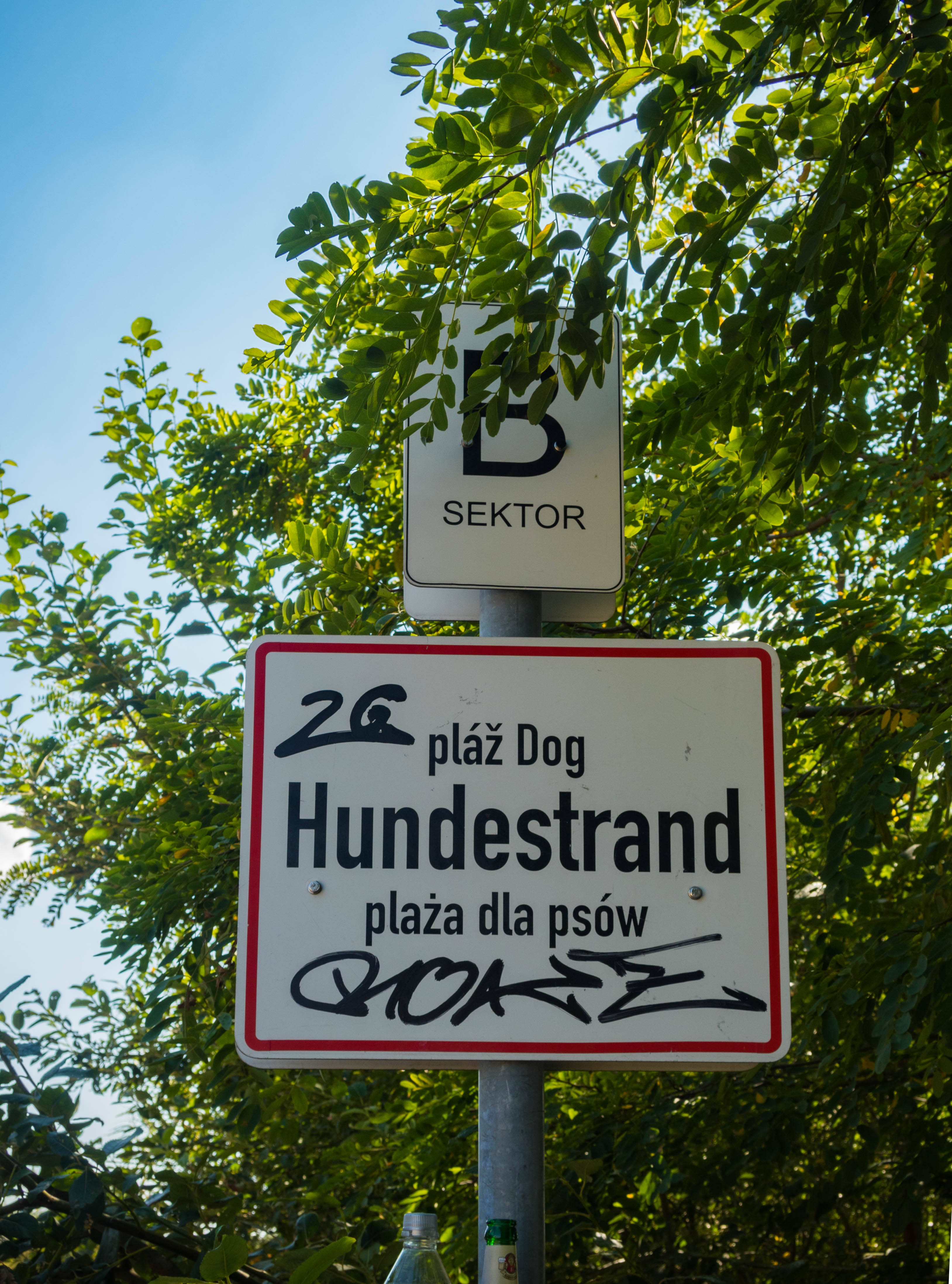 Po tej coelhowskiej myśli ruszamy dalej. Wszelkie zabudowania, a raczej ich resztki zostawiamy za sobą. Brzeg staje się bardziej zarośnięty, w równych odstępach trafia się jednak na niewielkie miniplaże, niemalże takie na wyłączność. Niektórzy korzystają z ograniczonego dostępu i paradują na golasa. Oficjalnie plaż dla nudystów nie ma, co nie zmienia faktu, że wielbicieli takiej formy plażowania nad Berzdofer See nie brakuje. Są za to legitne plaże, na których mile widziane są psy i jedna z nich znajduje się niedaleko za Deutsch Ossig. Tak więc psiarze, wiecie co robić. Drugą podobną, o której wiem znajdziecie przy Blaue Lagune.
