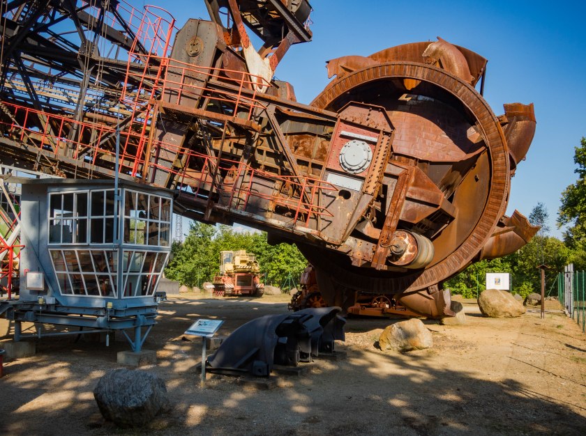 Koparka gabarytami mogłaby zawstydzić niejednego Transformera, wysoka jest na 33,5m, szeroka na niemal 50 a długość jej zamyka się w 75 metrach. Za 6 euro nie dość, że można obejść ją wokoło, to bez problemu da się również po niej pokręcić, zobaczyć jej wnętrzności a także wspiąć aż do punktu widokowego, z którego widoczki są naprawdę niczego sobie – prócz oczywistości w postaci jeziora i Landeskrone, mamy również spojrzenie w kierunku przeciwnym na oddalone dość Góry Izerskie. Z racji na pogodę i zapewne trudności w zapewnieniu bezpieczeństwa późną jesienią/zimą koparkę zwiedzać można od maja do października.