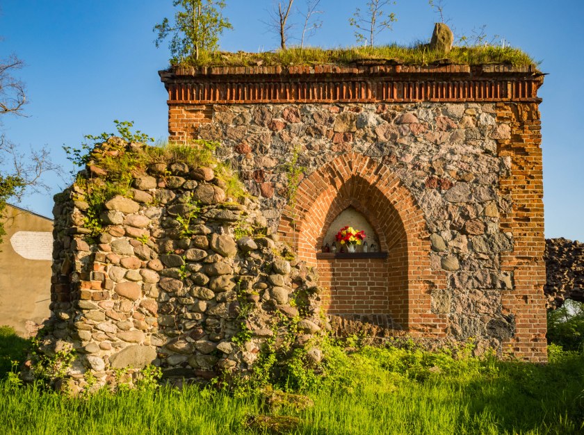Świątyni nigdy nie odbudowano. Zniszczona i ogołocona z wyposażenia dotrwała wieku XIX kiedy to najsampierw do ruin dobudowano niewielką kapliczkę/mauzoleum ówczesnych właścicieli, von Logau a następnie pozostałości po kościele zabezpieczono w formie trwałej ruiny. I w takiej to postaci trwa on do dziś a sama kapliczka przez lata…również zmieniła status dołączając do „ekipa ruina”. Wspinając się na wzgórze patrzcie pod nogi, może się bowiem okazać, że stąpacie po wyniesionych zeń i porzuconych epitafiach. I kurde, tak sobie myślę, czy nie znalazłoby się dla nich miejsca choćby we wschowskim lapidarium?