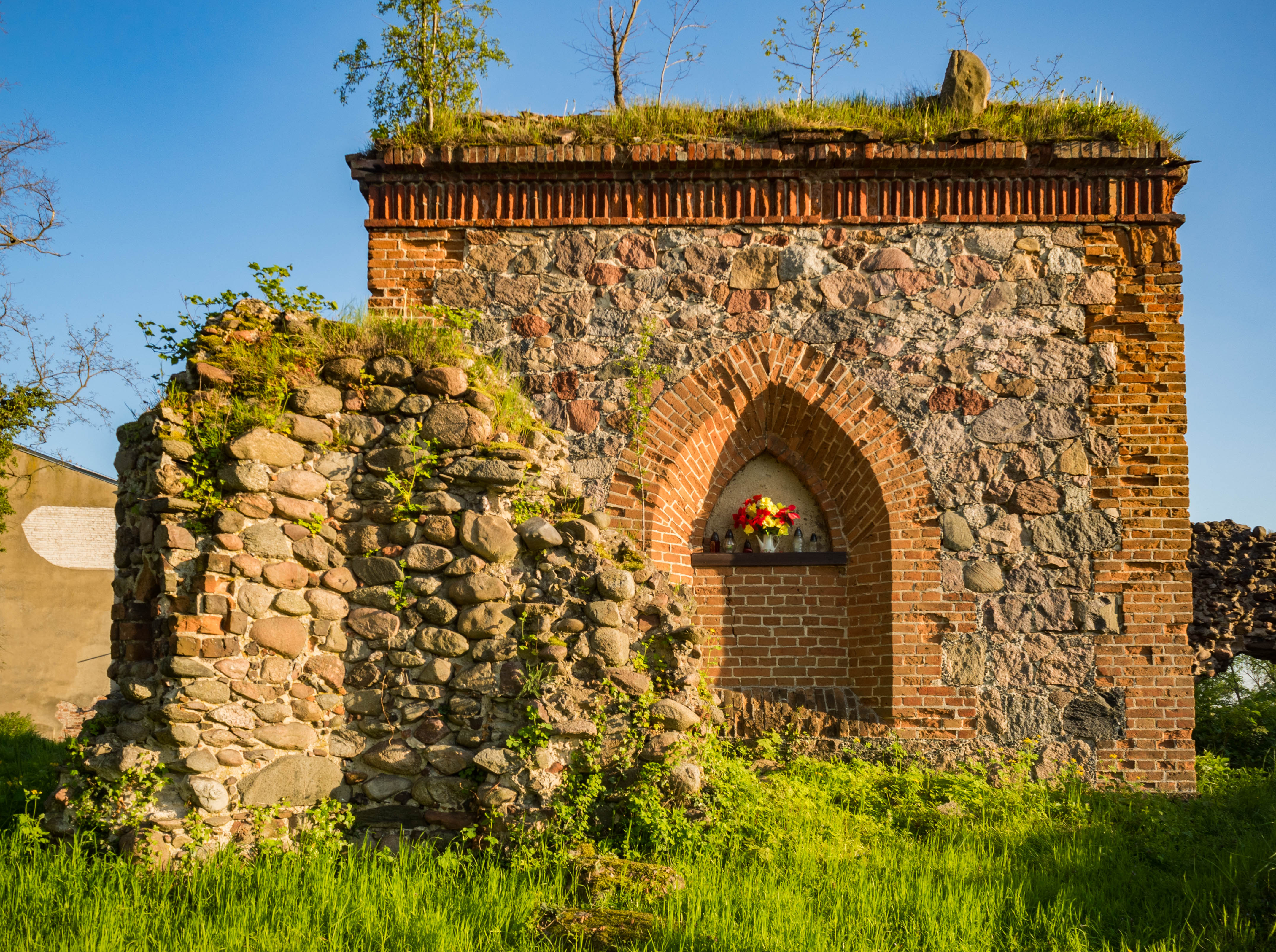W centrum wsi na niewielkim pagórku znajdziecie ruiny kościoła Św. Michała. Ruiny ze wszech miar ciekawe, jako żywo będące „pamiątką” po burzliwych czasach Wojny Trzydziestoletniej, wielkiego konfliktu o religijnym i politycznym charakterze.