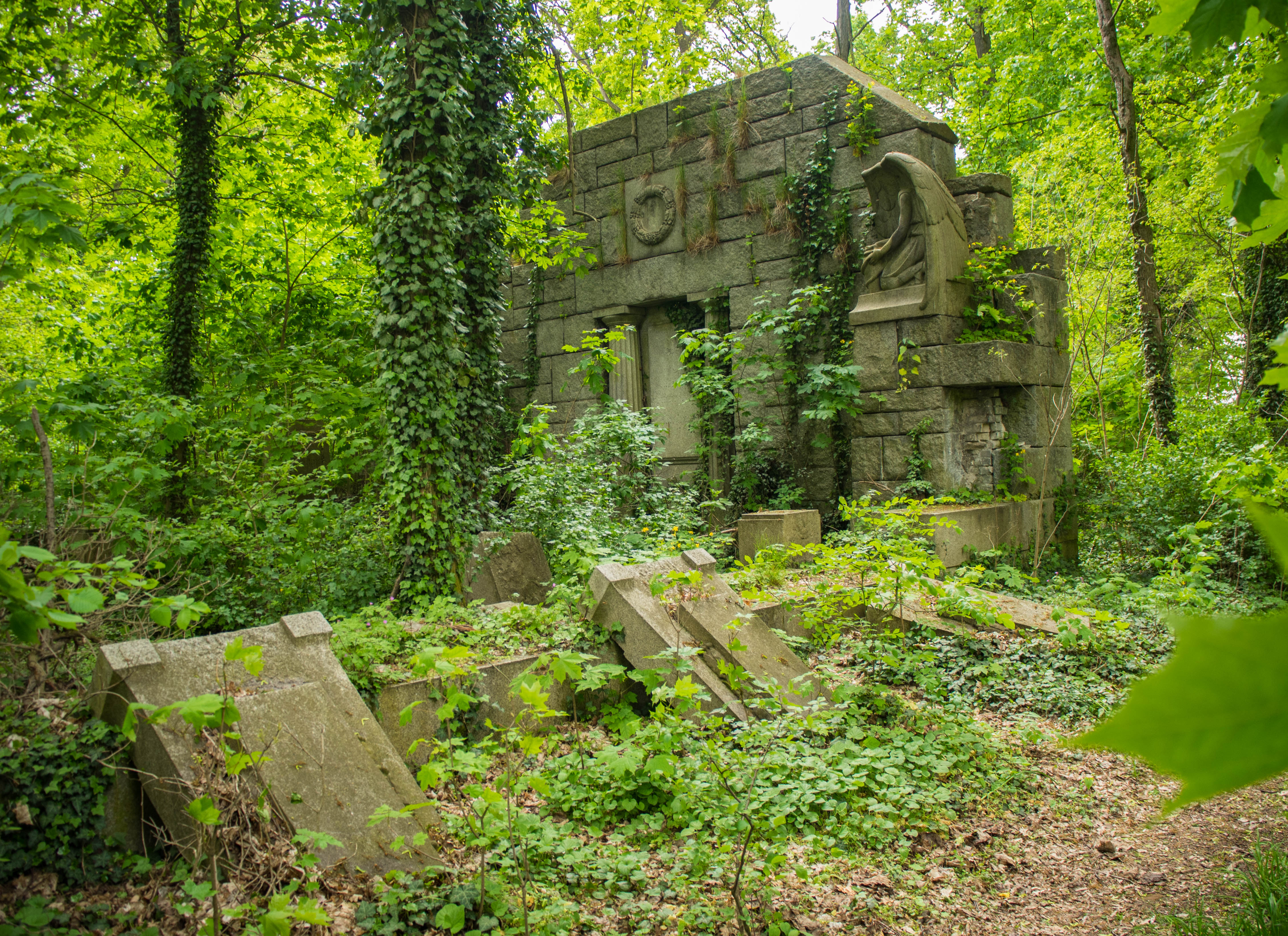 Choć mauzoleum jest wielce imponujące to jednak też trochę smutne. Rozkopane groby, przewrócone tablice, skute napisy, anioły pozbawione głów. Ktoś mocno się natrudził by doprowadzić je do tego stanu.