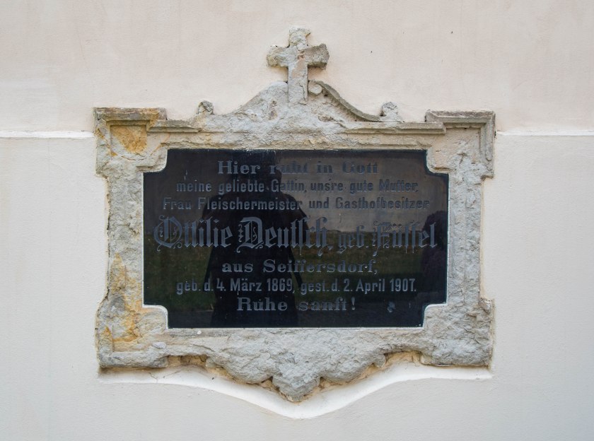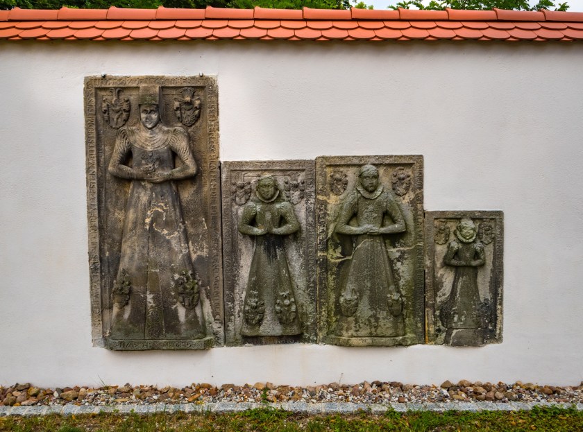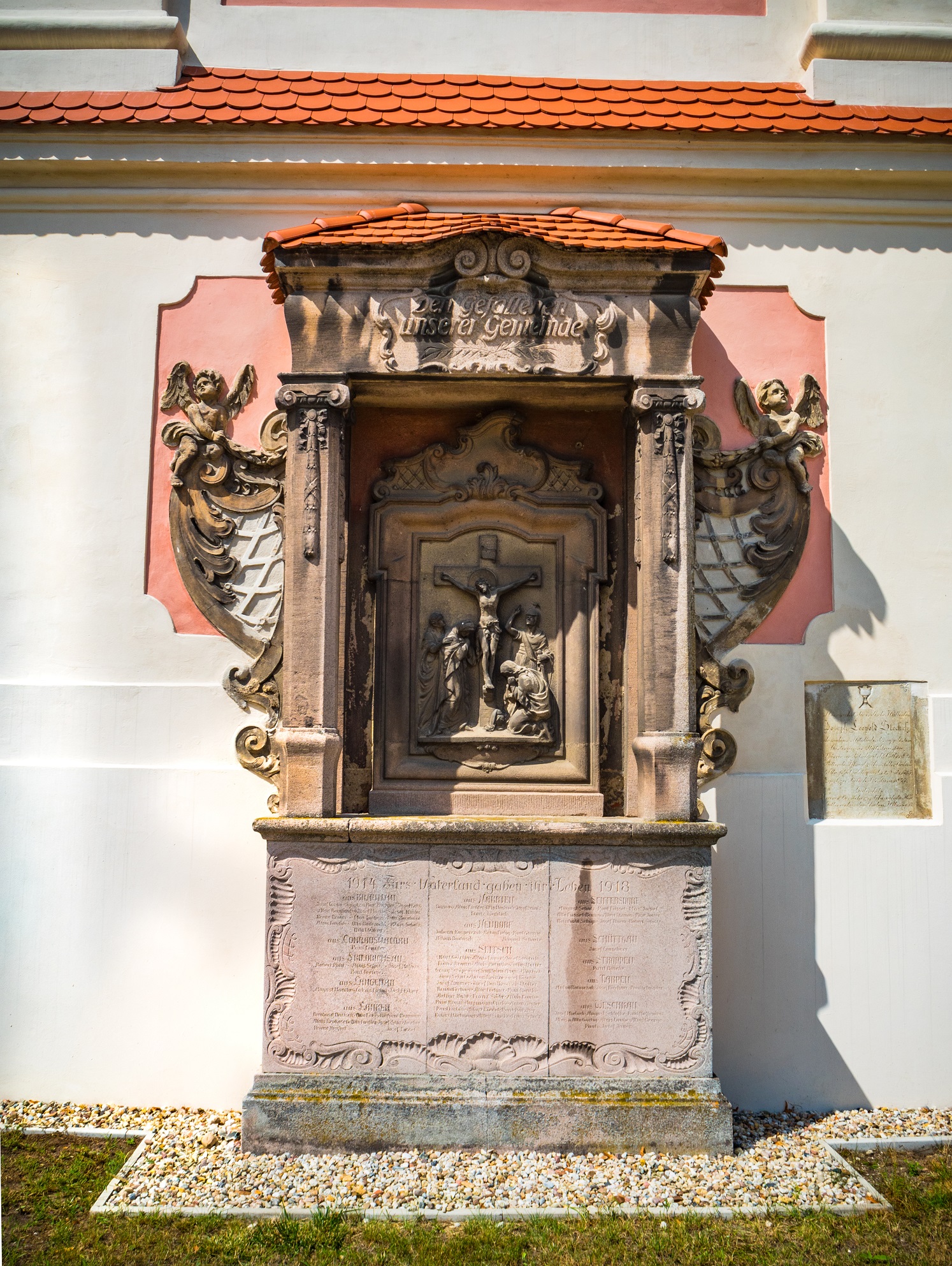 Ściany kościoła oraz otaczające go mury pełne są najróżniejszych, wiekowych płyt nagrobnych i epitafiów, ot choćby czterech niewiast ze znanych śląskich rodów Promnitzów, Kreckwitzów i Kottwotzów. Mnie najbardziej zaskoczył (w pozytywnym sensie) Pierwszo Wojenny Krigerdenkmal, stylizowany na barok, z listą niemal 80 mieszkańców Sicin, Wioski, Wronińca czy Radosławia, którzy polegli na frontach I Wojny Światowej. Niestety tak zachowany denkmal nie jest widokiem w tych okolicach oczywistym, tego samego dnia trafiłem na jeden pomnik całkowicie zniszczony i dwa znajdujące się w stanie złym, choć nie tragicznym…