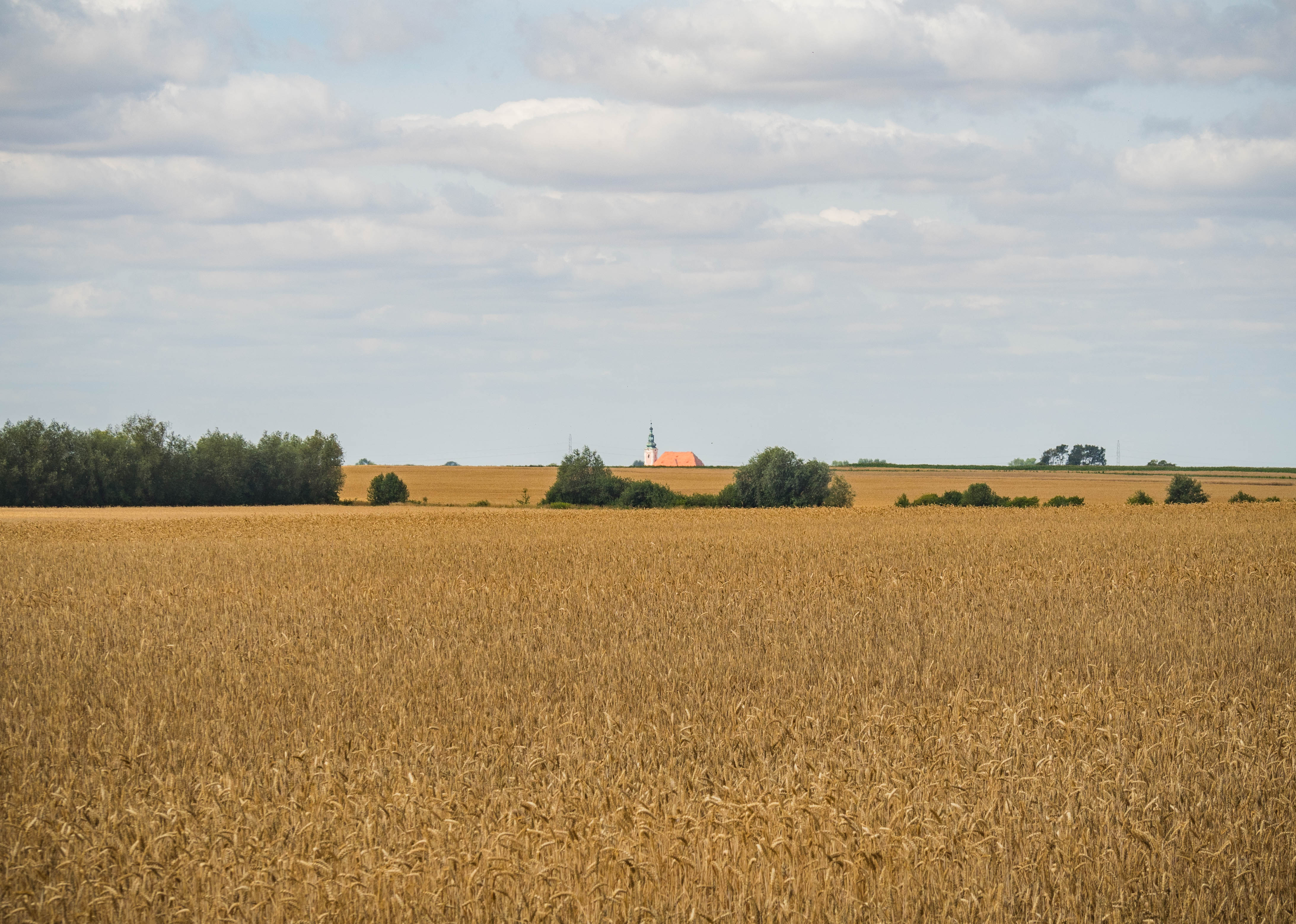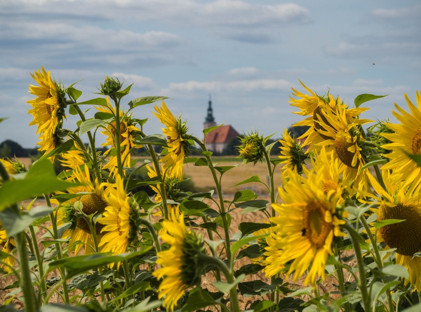 Siciny, niewielka wieś na granicy (tak tej historycznej jak i administracyjnej) Dolnego Śląska i Wielkopolski. Miejsce spokojne i sielskie, z dala od wielkiej turystyki, nie pchające się na pierwsze strony przewodników, przyciągające jednak takich jegomościów jak ja. W tym przypadku magnesem okazał się piękny barokowy kościół, perełka, którą spodziewalibyście się znaleźć w jakimś większym mieście a nie we wsi pośród sierpniowych pól słoneczników.