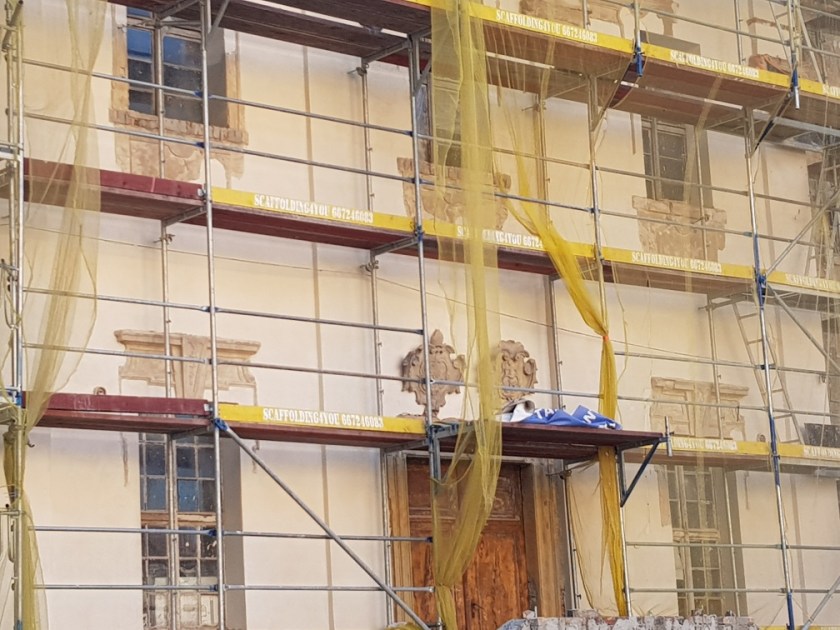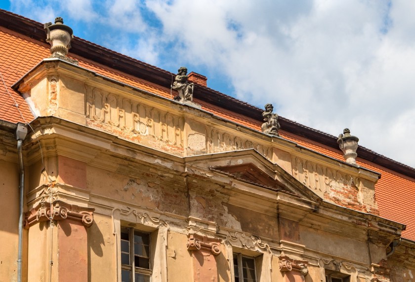 Od lat śledziłem doniesienia z pola walki o dofinansowanie i przeprowadzenie remontu, który ten stan rzeczy by zmienił i powiem wam, że powoli przestawałem wierzyć, że kiedyś do niego dojdzie. Dobre kilka lat temu udało się wyremontować dach… i na tym sprawa stanęła. Były przetargi, kwoty, projekty. Wszystkie one pozostawały jednak w sferze teorii. Aż tu nagle, dosłownie kilka dni temu kolega odwiedził wieś i z radością oznajmił, że DZIEJE SIĘ. Tak z przyczajki, bez rozgłosu trwa odnawianie frontowej elewacji. I… paradoksalnie spoglądając na gładkie, sterylne wręcz ściany doszedłem do wniosku, że będzie mi brakować tych starych, obdrapanych, pokrytych stemplami przeszłości 😛 Wiem, dość nostalgiczne myślenie, romantyzujące „klimatyczne ruiny”, ale cóż poradzę. Serce jedno, rozum drugie i cieszę się, że najpewniej – przy dobrych wiatrach – uda się Siciński pałac dźwignąć na nogi.