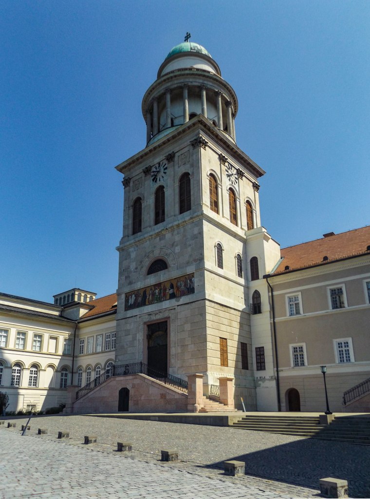 Z zewnątrz najbardziej zadowoleni będą miłośnicy klasycyzmu. Monumentalna przeszło 50 metrowa wieża-dzwonnica widoczna jest już z wielu kilometrów. Ciekawy jest jej portal, brama i taka półrozeta wzdłuż której pociągnięto szereg zdobień, a daty tam umieszczone przypominają o początku opactwa, pierwszej poważnej przebudowie… i w sumie nie wiem o czym, poszukiwanie odpowiedzi co przyniósł rok 1938 nie dało odpowiedzi. Co jednak najbardziej przyciąga wzrok? Mozaika autorstwa Miksy Rotha, węgierskiego mistrza art-nouveau, tu jeszcze w dość stonowanym wydaniu. Zdecydowanie będę musiał odwiedzić Budapeszt i wybrać się jego śladem. Wam też polecam.