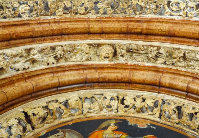 Największym cudem jaki tam znajdziecie jest jednak romańsko-gotycki portal, Porta Speciosa prowadząca do jednej z naw schowanego głębiej kościoła klasztornego, bazyliki Św. Marcina. O ludzie, cóż to za piękna robota. Pięć par podwójnych kolumn z czerwonego marmuru, zamkniętych misternymi archiwoltami na przemian marmurowymi i wapiennymi. Do tego równie okazale ozdobione drzwi i wieńczący całość obraz Św. Marcina dzielącego się ubraniem z ubogim. No proszę państwa: kawał Sztuki przez duże S.