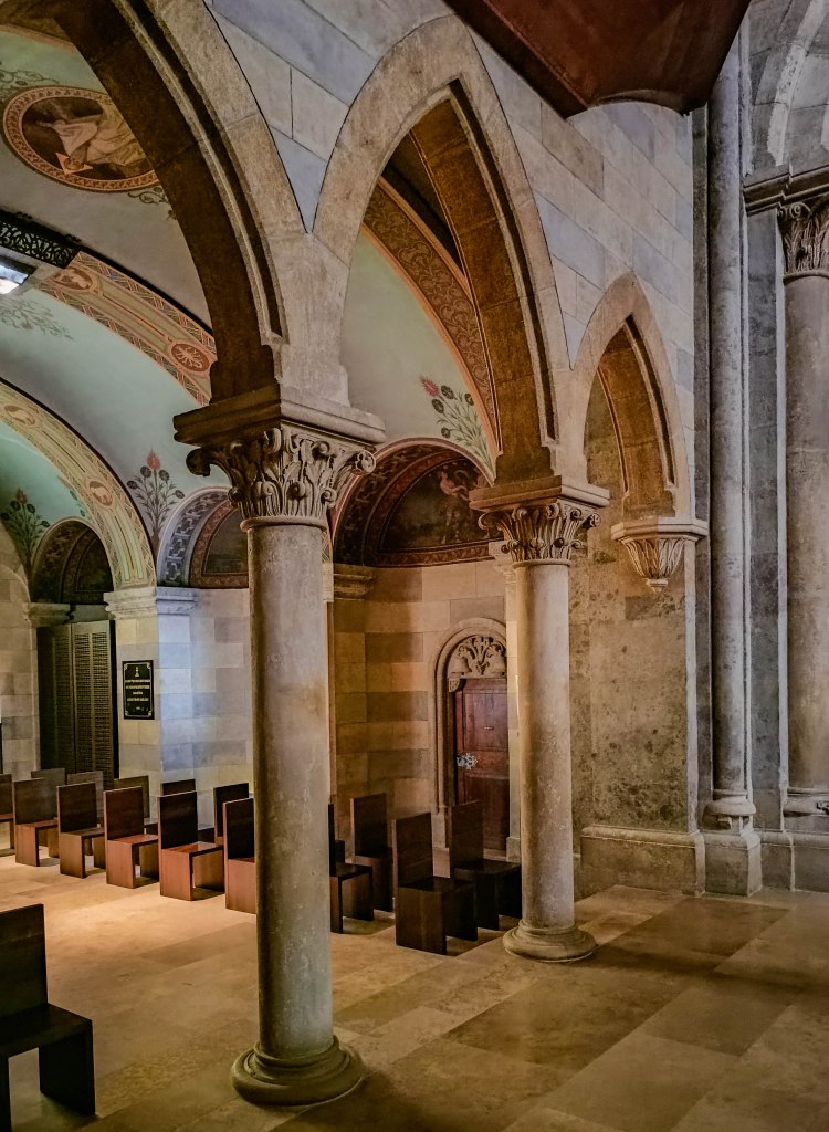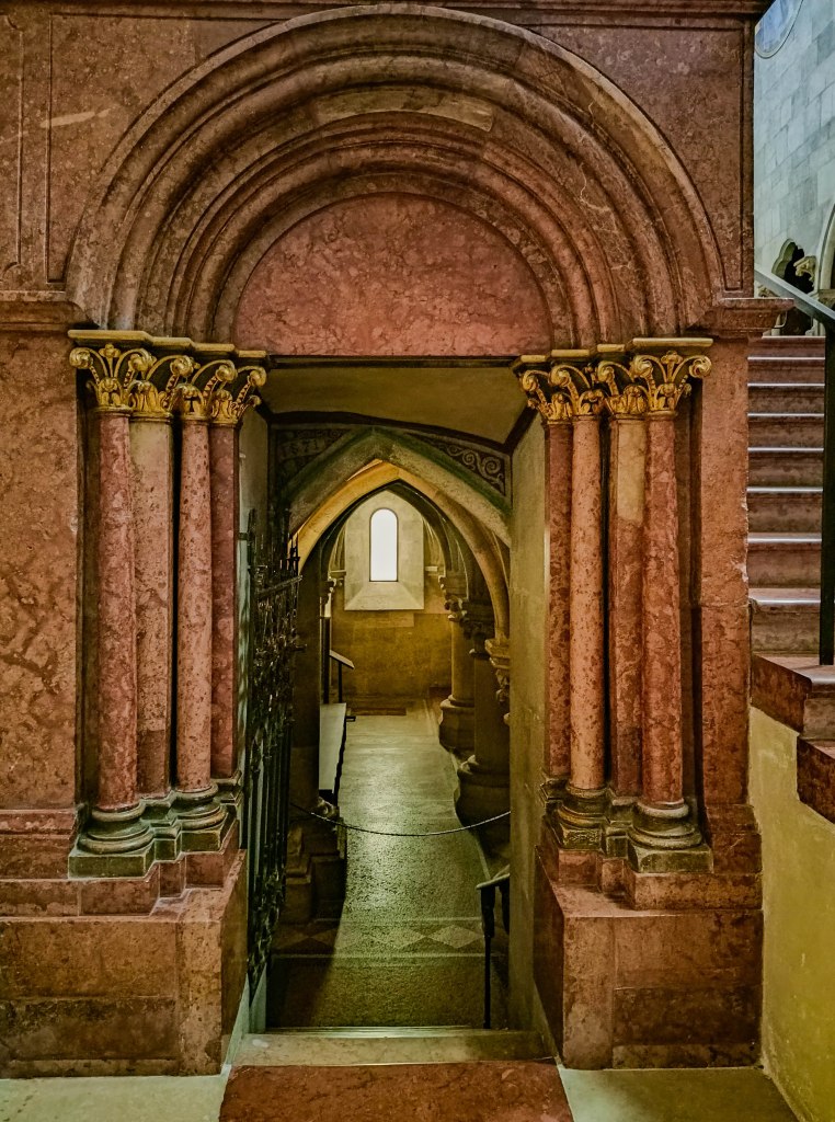 Najniezwyklejszym miejscem jest jednak kryjąca się pod prezbiterium krypta, generalnie gotycka, ale i z cegłami pamiętającymi romańskie początki. Prowadzi do niej kolejny wybitny portal z czerwonego marmuru a po zejściu kilku schodków trafia się do niewielkiego pomieszczenia zawieszonego gdzieś w XIII wieku. I tylko pochowane tam serce Otto Habsburga zaburza wybitnie średniowieczny feel tego miejsca.