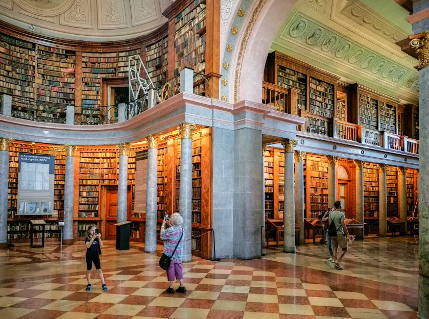 A w znajdującej się w sąsiednim budynku bibliotece barok czuje się jak u siebie w domu. Zdradzę wam, to właśnie ona była jednym z największych magnesów, które do Pannonhalmy mnie przyciągnęły.
