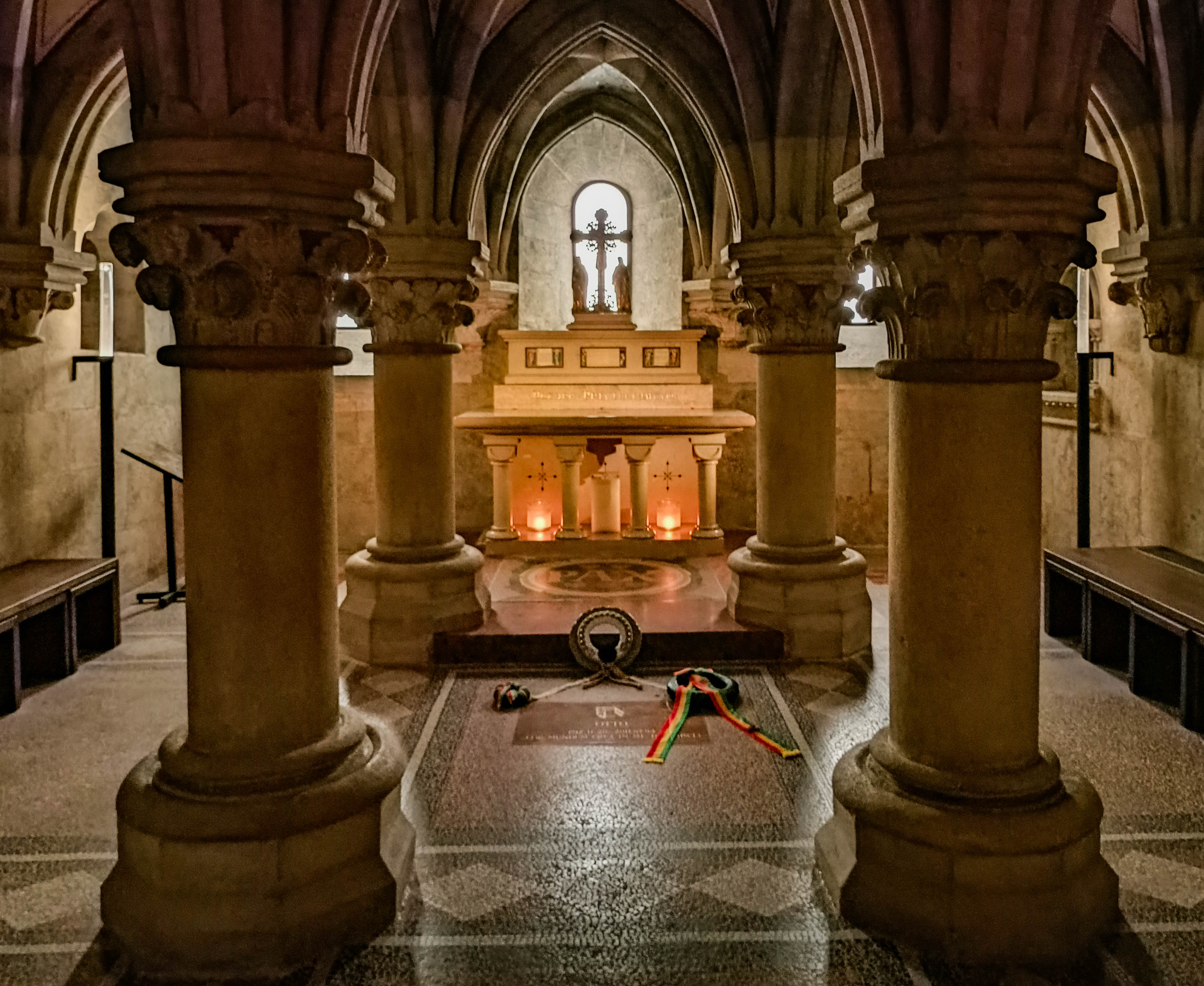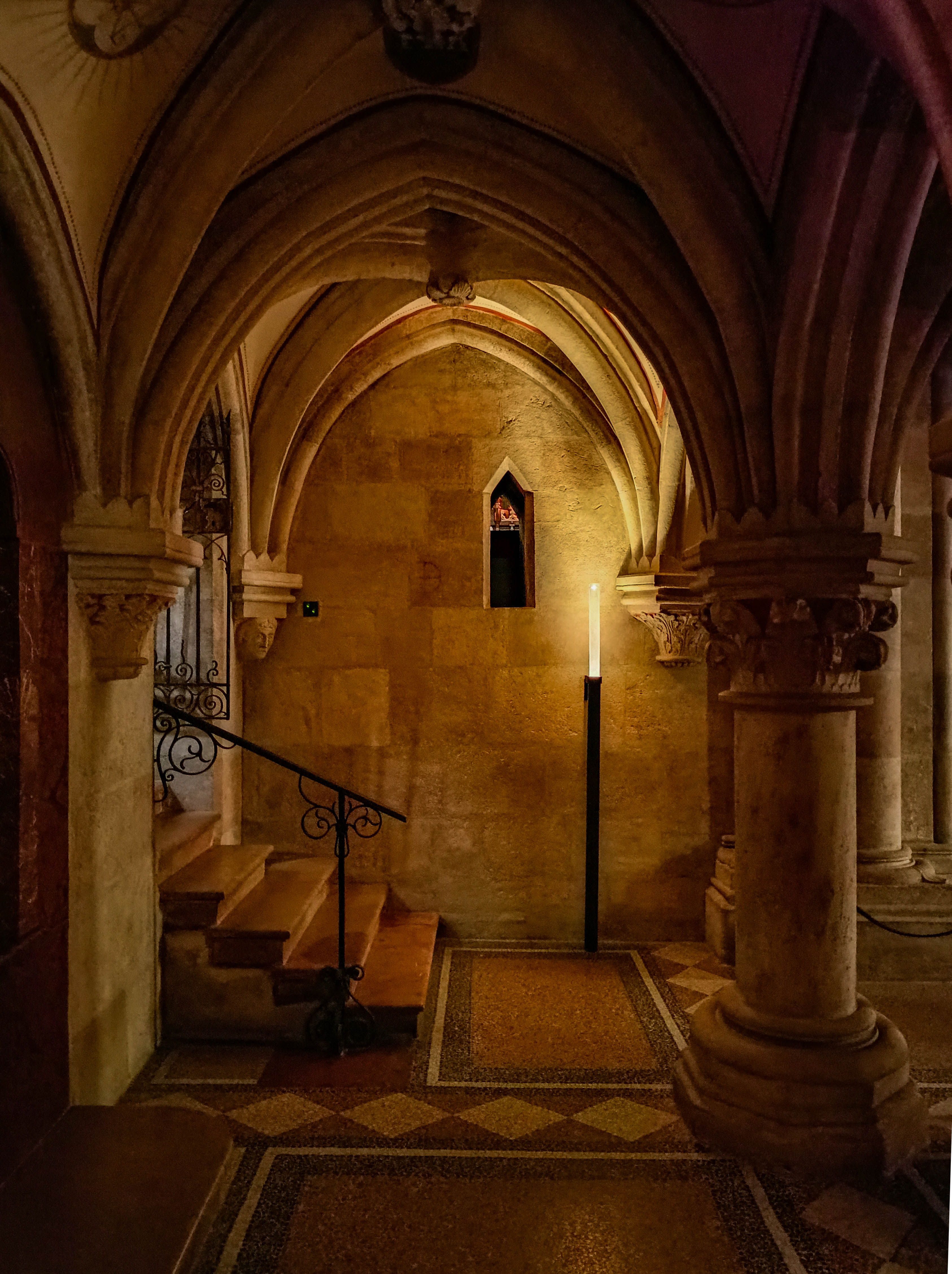 Najniezwyklejszym miejscem jest jednak kryjąca się pod prezbiterium krypta, generalnie gotycka, ale i z cegłami pamiętającymi romańskie początki. Prowadzi do niej kolejny wybitny portal z czerwonego marmuru a po zejściu kilku schodków trafia się do niewielkiego pomieszczenia zawieszonego gdzieś w XIII wieku. I tylko pochowane tam serce Otto Habsburga zaburza wybitnie średniowieczny feel tego miejsca.