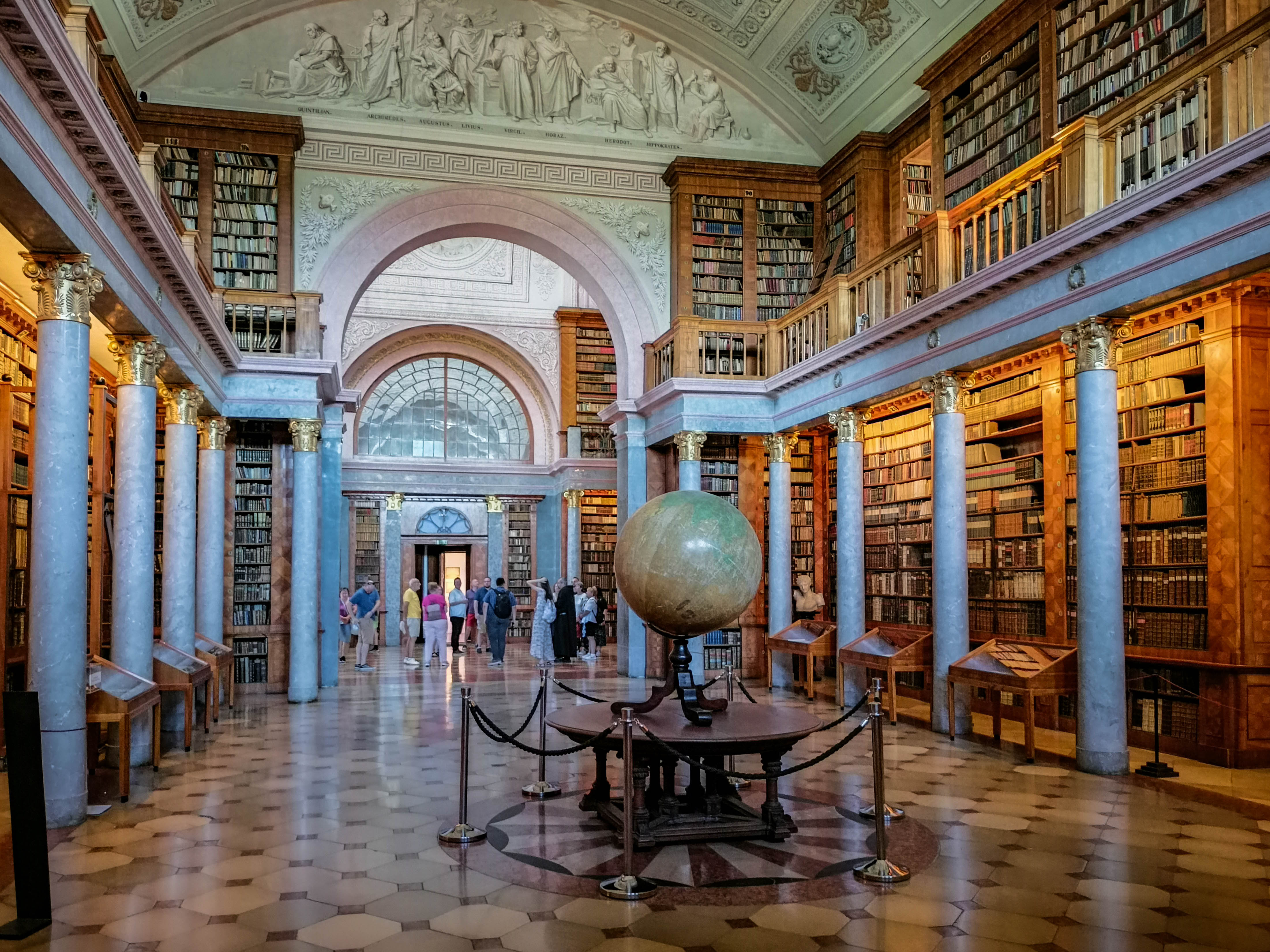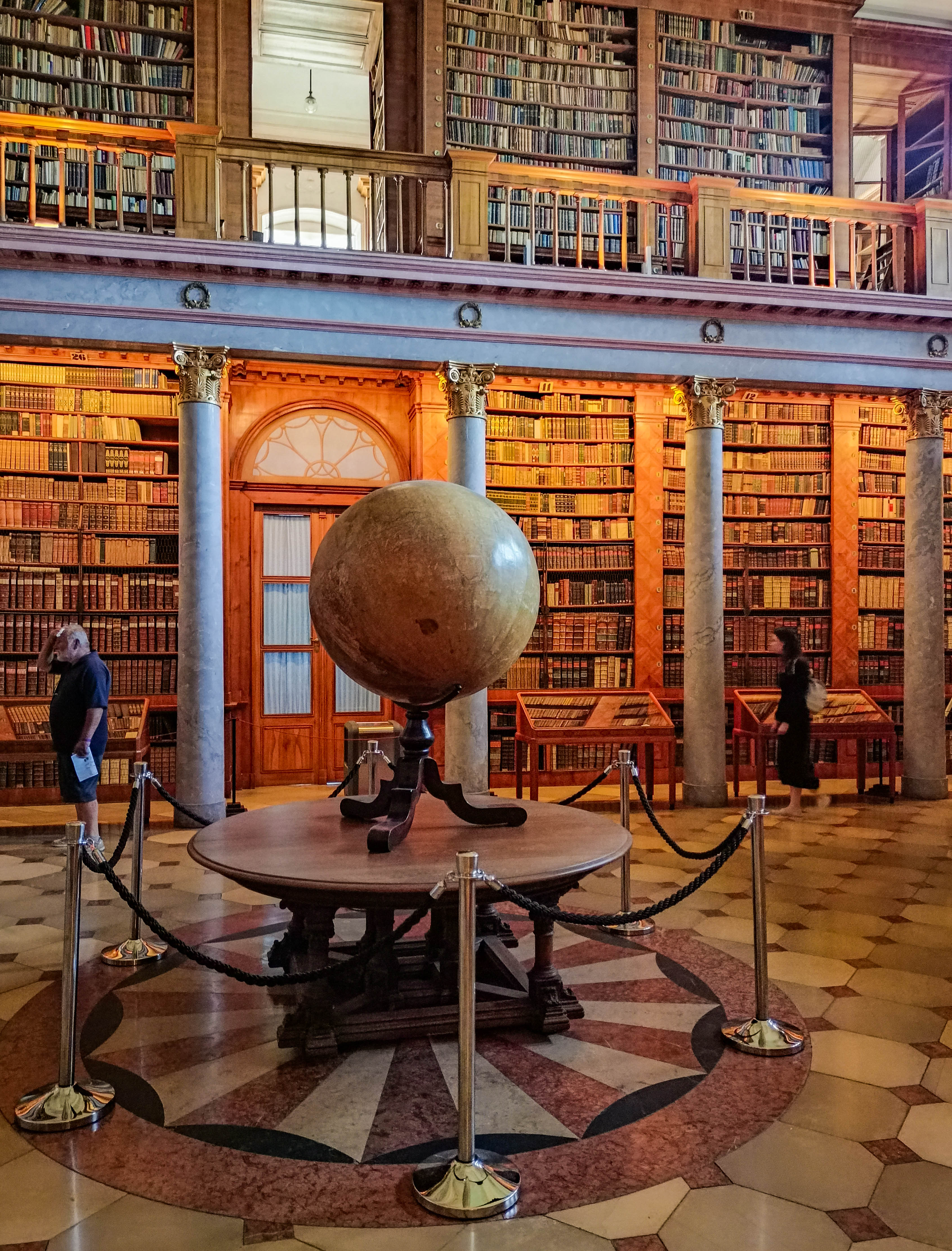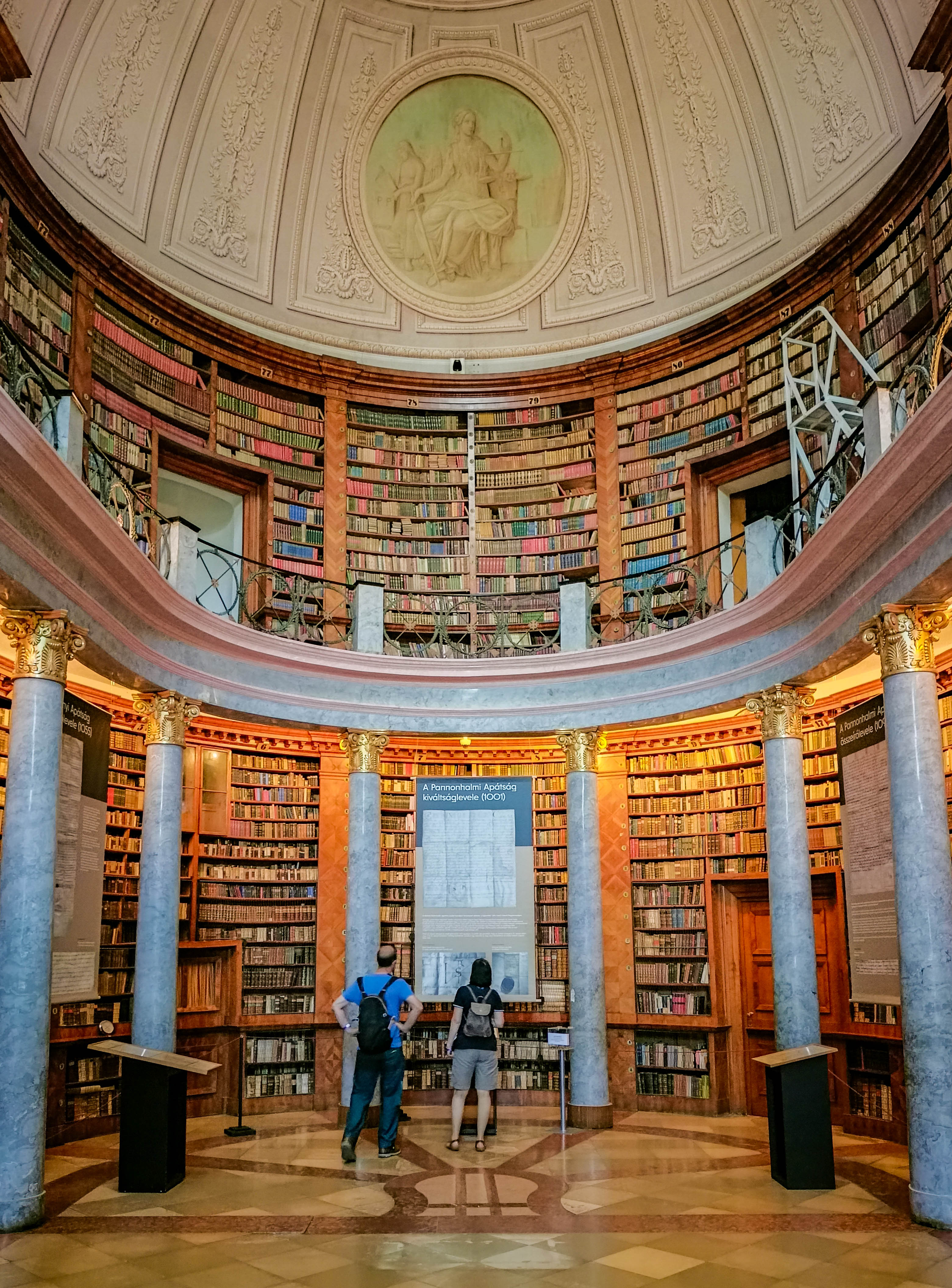 A czy jest to jedna z najładniejszych węgierskich bibliotek? No jasne. Czy najładniejsza? No tu zostawię was bez odpowiedzi bo Budapeszt wysoko stawia poprzeczkę. W każdym razie, marmurowe kolumny, rzeźby Św. Stefana i cesarza Franciszka I (ale i II jednocześnie), piękne polichromie na suficie, nawiązujące tak do mitologii wszelakich jak i węgierskiej nauki, zabytkowe globusy czy XVIII-wieczne organy Martina Podkonický’ego to nie wszystkie cuda jakie na niezwykłość biblioteki się składają.