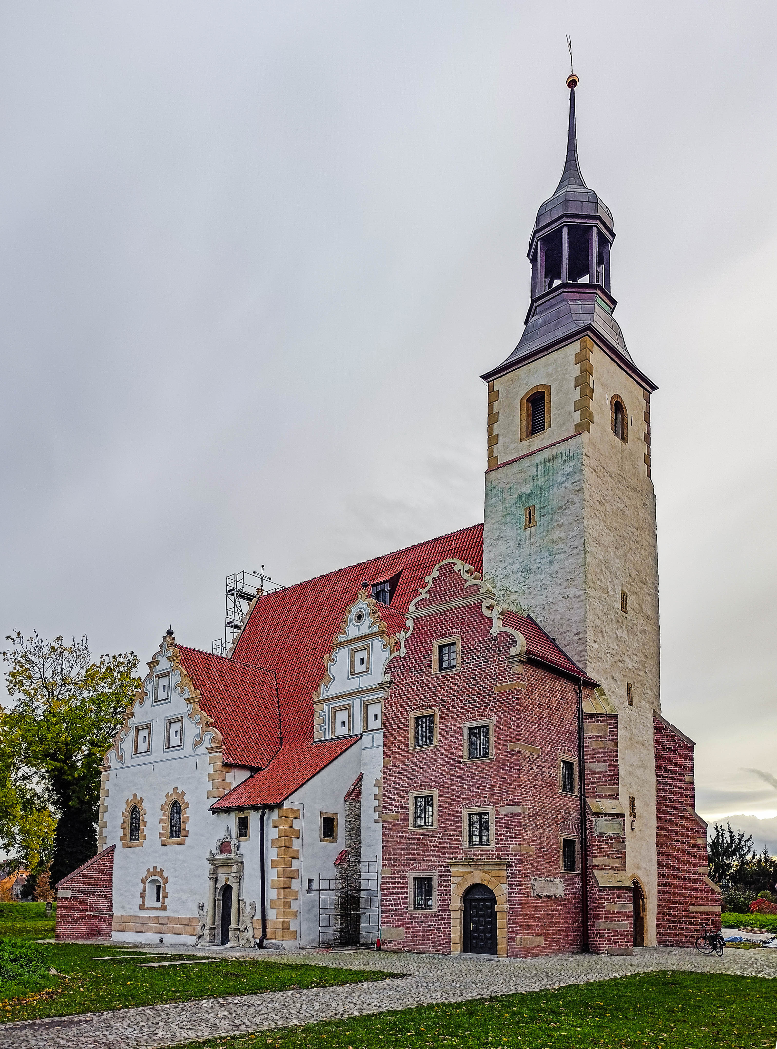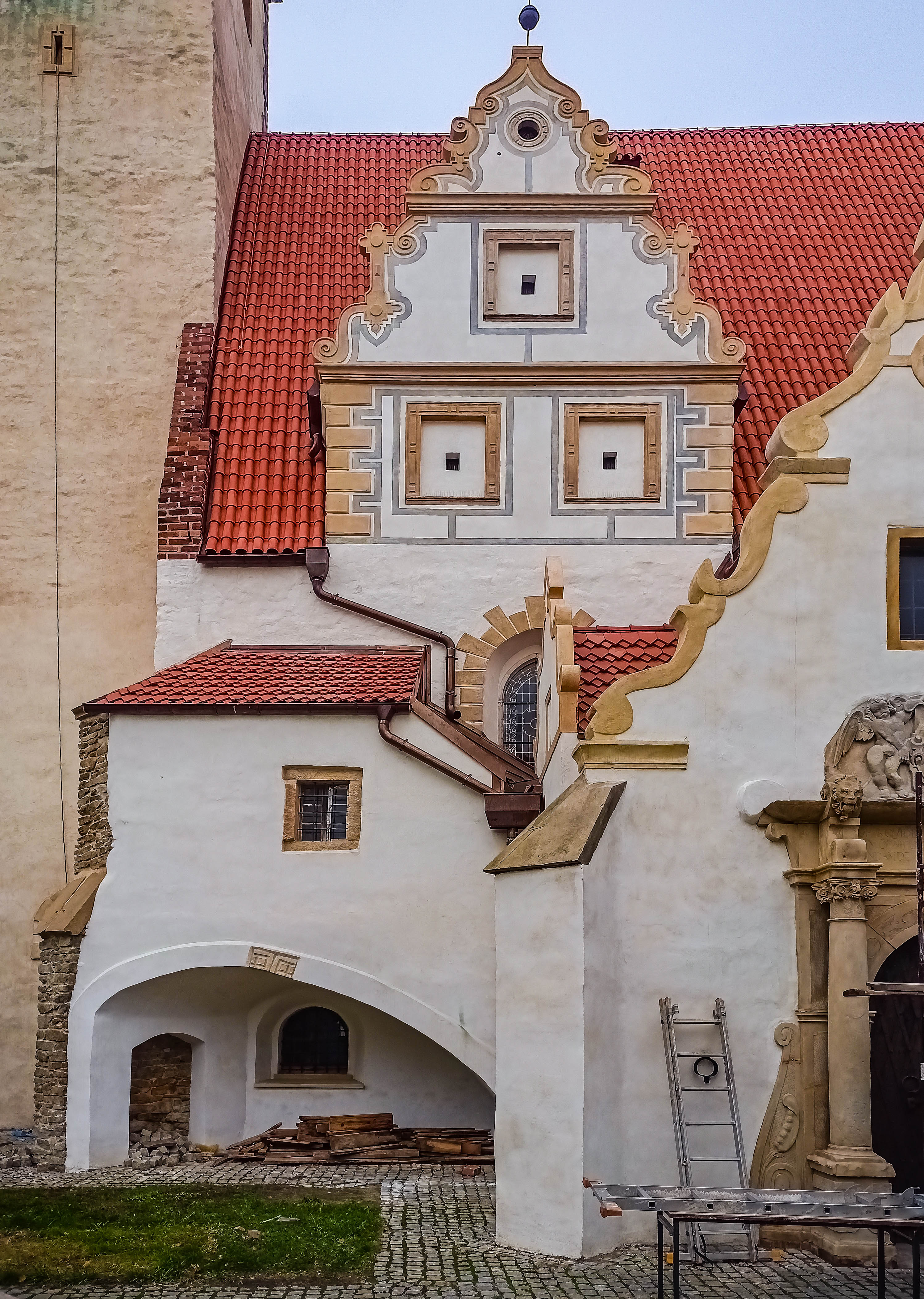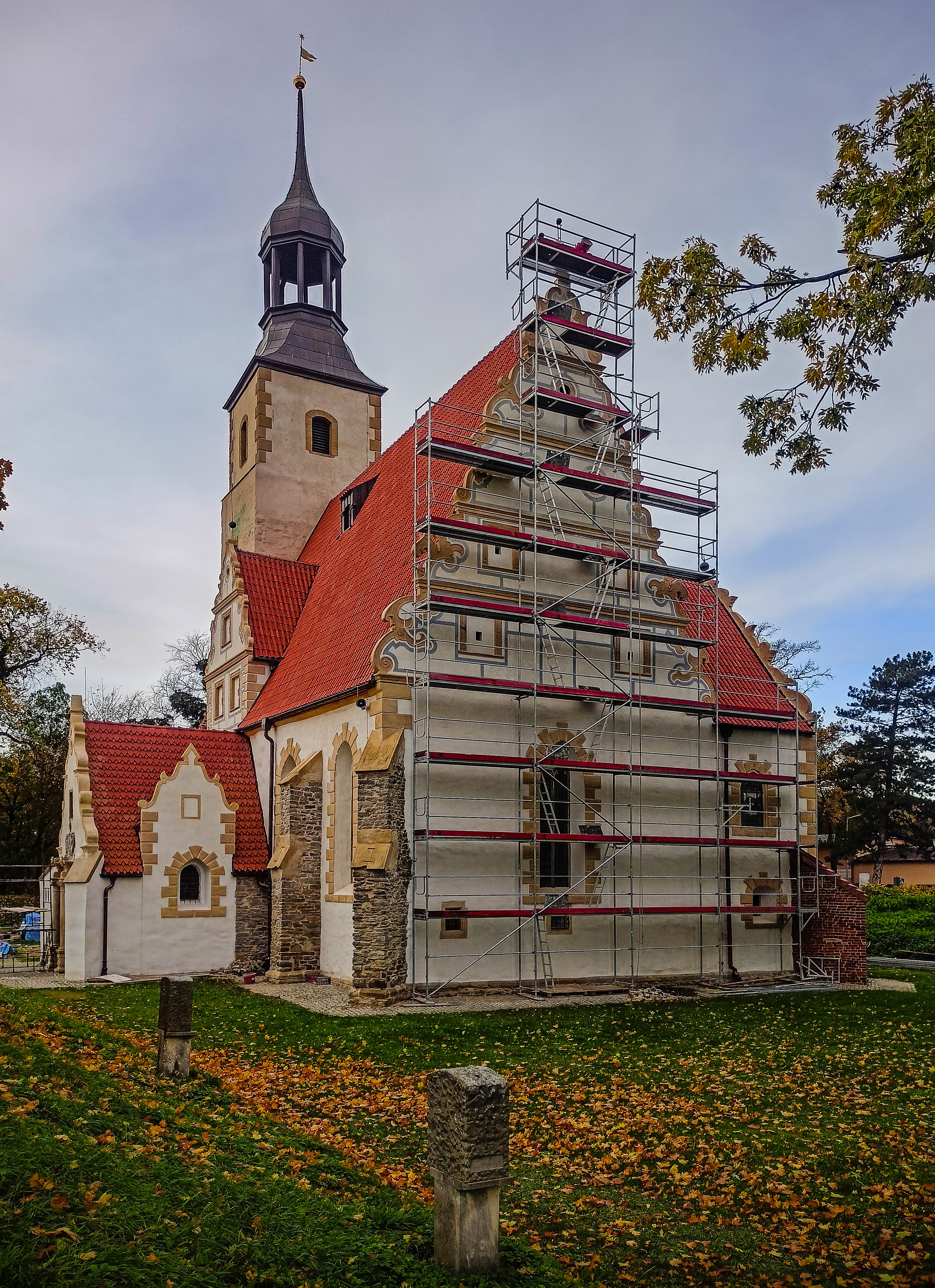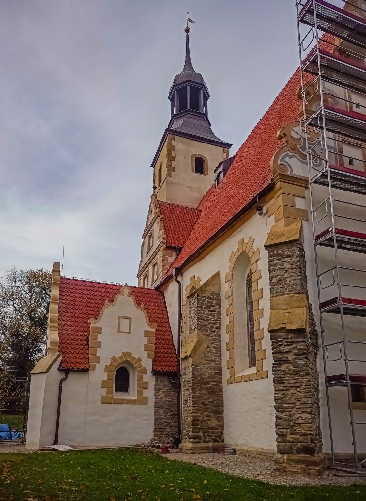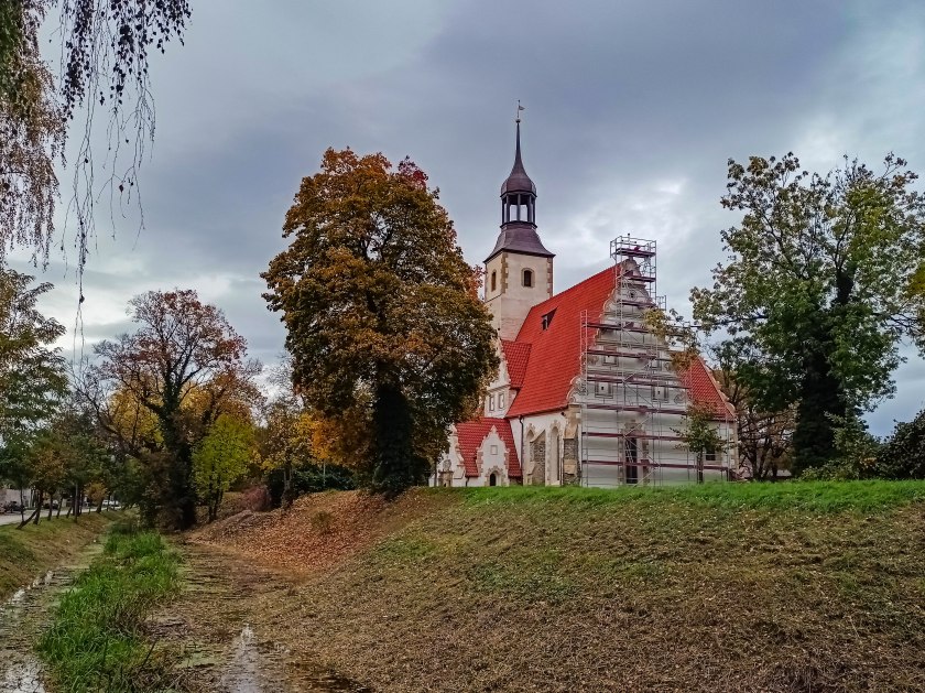 Swoją drogą, dzięki temu, że wybierałem się do Żórawiny jak sójka za morze, w kościele rozpoczęto dość kompleksową renowację i nie dane mi było trafić na świątynię w stanie dość przedroboczym. Co z jednej strony jest dobre, bo odrestaurowane elewacje wyglądają świetnie, ale z drugiej szkoda, bo lubię niekiedy spojrzeć na takie surowe, pełne historycznego „brudu” ściany.