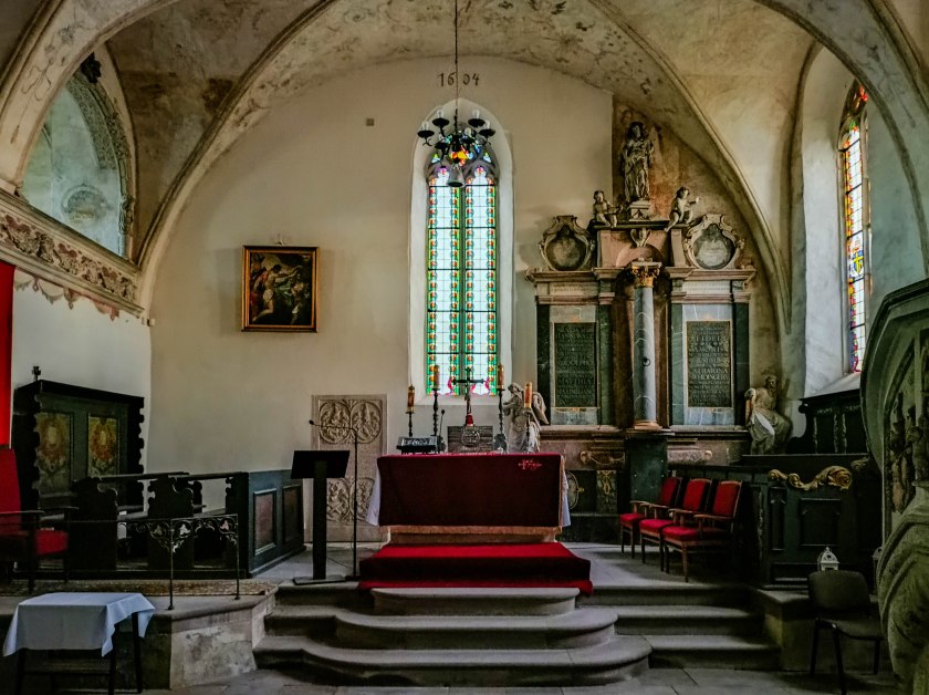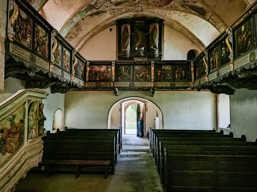 Wszystkie te cuda mogłem obejrzeć dzięki uprzejmości pani opiekującej się świątynią, która zauważyła jak kręcę się wokół i odbijam od zamkniętej bramy. Bo wiedzieć wam trzeba, że na co dzień, i tym bardziej poza sezonem letnim kościół jest raczej zamknięty i by móc zobaczyć jego wnętrza trzeba liczyć na łut szczęścia i obecność na miejscu owej opiekunki, która jak tylko ma czas to służy pomocą i nie dość, że bramy otworzy to i opowie ciekawie o wnętrzach.