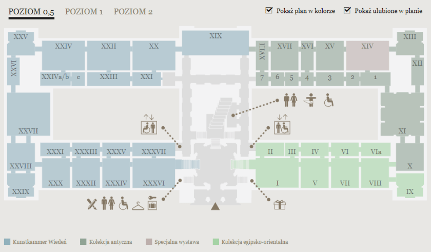 Przepastne cesarskie zbiory zajmują przeszło 80 sal, dlatego naprawdę warto dobrze zaplanować zwiedzanie. Część z was dłużej zatrzyma się na parterze gdzie można przenieść się w czasie do starożytnego Rzymu, Grecji czy Egiptu (z jedną z największych na świecie kolekcji mumii), inni jak ryby w wodzie poczują się piętro wyżej w towarzystwie Bruegla Starszego, Vermeera czy kulinarnych „eksperymentów” Arcimboldo, z kolei jeszcze część z was pogna na najwyższe piętro zobaczyć jedną z największych na świecie kolekcji monet. Cóż, nas w tej ostatniej grupie nie było i bogatemu zbiorowi monet powiedzieliśmy „do zobaczenia kiedyś tam”. Pozostałe dwa piętra obejrzeliśmy jednak w pełnym skupieniu, co odbiło się trochę na finalnym zmęczeniu. Łapcie pomocne mapki a w międzyczasie zacznijmy spacer po najciekawszych eksponatach.