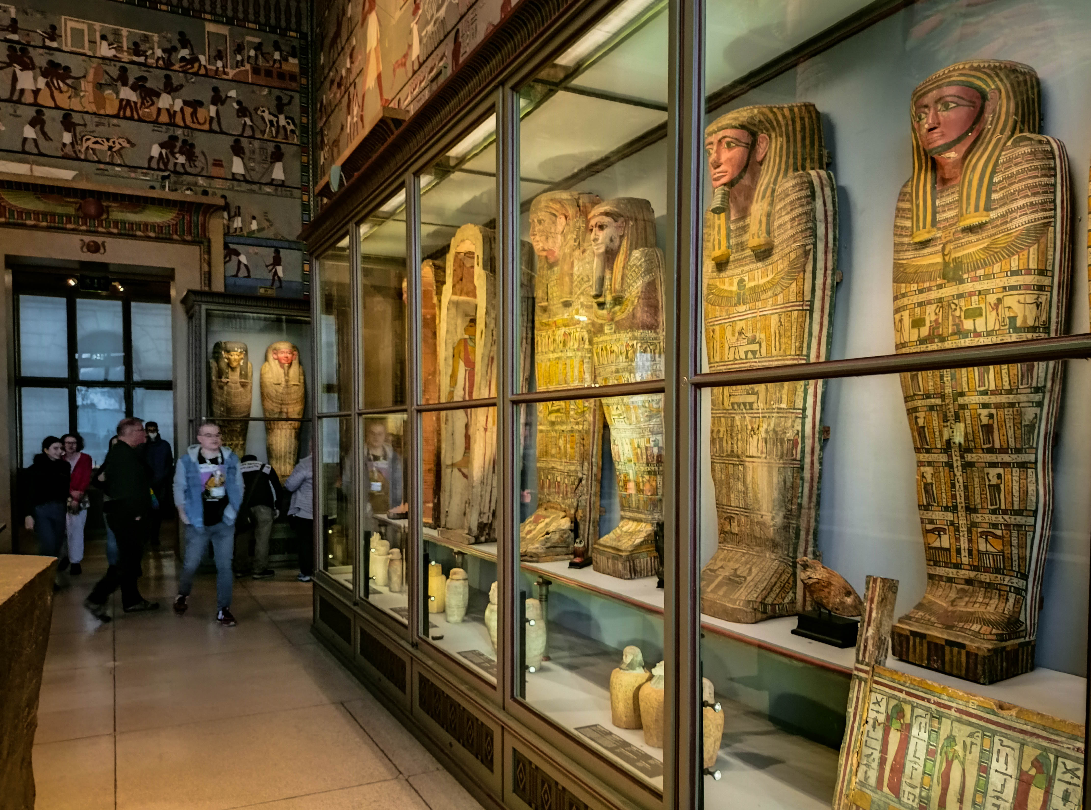 Muzeum poszczycić się może niezwykłą, największą poza Egiptem kolekcją mumii, w zdecydowanej większości nie są one jednak eksponatami w gablotach a obiektami wnikliwych badań. Tym co jednak zachwyca są ich trumny, niekiedy sprzed 3000 lat, wciąż bogato zdobione i pełne symboliki, które dla znawców tematu są pewnie tematem niekończących się rozmów. Czy spacerując pomiędzy tymi trumnami, sarkofagami, stelami, rzeźbami bóstw i kapłanów, ścianami pokrytymi hieroglifami można poczuć się dr Henry Walton Jones Jr? Nie zaprzeczę.