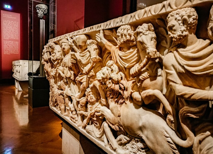 Sale antyczne wjeżdżają z wysokiego C i już sama ich aranżacja robi wrażenie. Stylowe, zachwycające bogactwem sklepień zabierają w podróż po głównie rzeźbiarskim dziedzictwie starożytnej Grecji i Rzymu. I kurczę, ależ to jest kapitalne. Można nie wiadomo jak często spotykać się z antycznymi dziełami, ale i tak zawsze robią one robotę. Swoją drogą oglądanie tych niesamowitych płaskorzeźb, sarkofagów, mozaik czy diablo realistycznych rzeźb niejako rykoszetem wywołało u mnie potrzebę rozprawienia się z dawnymi uprzedzeniami (wbitymi do głowy w szkole) na temat średniowiecznego „odcięcia” się od antyku – co przecież przy patrzeniu na samą romańską architekturę wydaje się oczywistym błędem a dalsze odkrywanie Nicoli i Giovanniego Pisano czy dzieł pokroju Psałterza paryskiego tylko utwierdzają w przekonaniu, że nie takie mroczne średniowiecze jak je malują.
