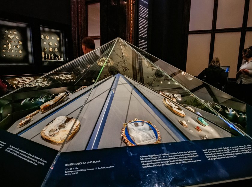 Dziś setki eksponatów pochodzących z kolekcji nie tylko wspomnianej dwójki zasila potężne zbiory MHS – wyroby z drewna, marmuru, brązu czy złota spotykają się tu z misternymi dziełami z kości słoniowej, bursztynu czy renesansowymi wariacjami na starożytne gemmy. Sam materiał to jednak tylko punkt wyjścia do tematyki czy po prostu osobliwości przedmiotów. I kurczę, przy niewątpliwych walorach artystycznych zbioru to właśnie tu poczuć można zmęczenie. Kolekcja składa się bowiem z przeszło 2000 eksponatów i nie jest możliwym skupić się na wszystkich. Dlatego pamiętajcie, warto zwiedzać na czillałcie. No chyba, że jesteście zbudowani z jakiejś lepszej gliny i cały dzień w muzeum wam niestraszny 😉