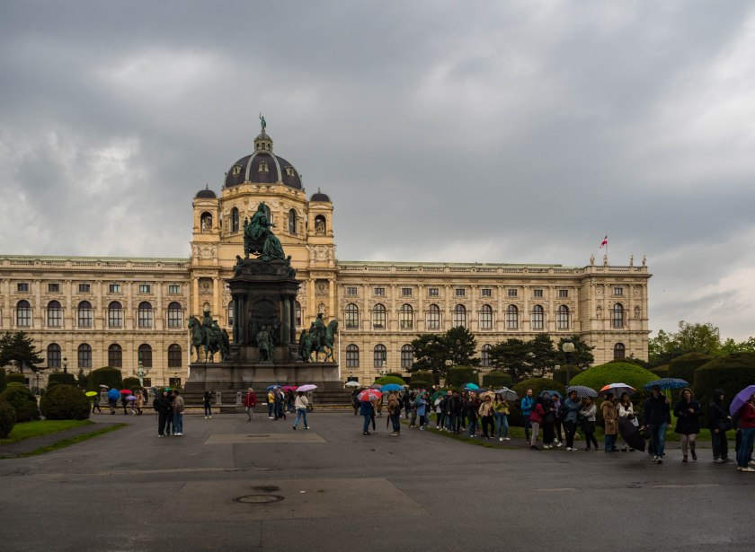 Tak jak Muzeum Historii Naturalnej powstało by zgromadzić w jednym miejscu przyrodnicze eksponaty z wielu pomniejszych kolekcji tak zadaniem Muzeum Historii Sztuki stało się zaopiekowanie kolekcjami skupionymi na sztuce. Największymi mecenasami byli Rudolf II oraz Leopold Wilhelm, ale i wcześniejsi jak i późniejsi władcy dołożyli swoje cegiełki. I z tych cegiełek złożony został imponujący, historyzujący, romansujący z włoskim renesansem gmach. Wraz z drugim, bliźniaczym, który już wcześniej mieliśmy okazję poznać. A pomiędzy nimi wygodnie rozsiadła się arcycesarzowa Maria Teresa, która w towarzystwie swoich generałów i doradców czuwa nad jednym z najważniejszych punktów wiedeńskiego Ringu. Nieomal pod sam budynek dostaniecie się tak metrem (linia 3, wysiadka na przystanku Volkstheater) jak i tramwajem (linie 1, 2, 71 przystanek Ring/Volkstheater).