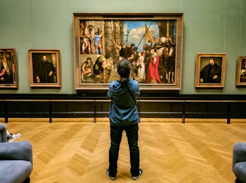 Sale w liczbie 40 podzielone są na trzy grupy: malarstwo włoskie, hiszpańskie i francuskie (choć te ostatnie na palcach obu rąk można zliczyć :P); malarstwo niderlandzkie (a potem holenderskie i flamandzkie) i niemieckie; wystawy czasowe. I wiecie co jest najciekawsze? Potężne gabaryty i pokaźna liczba sal sprawiają, że spora ilość odwiedzających „rozlewa się” i nie ma (a w każdym razie ja nie miałem) sytuacji jak w Oslo przy „Krzyku” Muncha czy choćby w Belwederze przy „Pocałunku” Klimta, że trzeba odstać swoje by doczłapać się i całą krótką chwilę rzucić okiem w kierunku wielkich malowideł. Nope. Tutaj można stanąć przed Tycjanem, Rembrandtem i w samotności rozmawiać z dawnymi mistrzami. Ba, można nawet było oszukać system i stanąć oko w oko z jednym z tych Vermeerów, którzy w zeszłym roku nie trafili do Rijksmuseum na wielką wystawę jego prac.