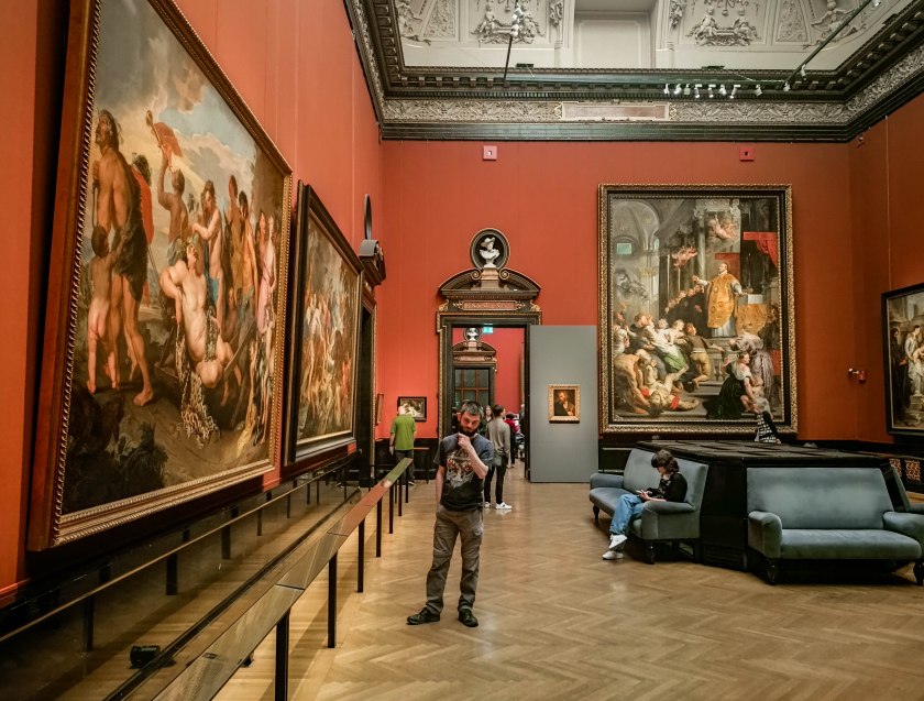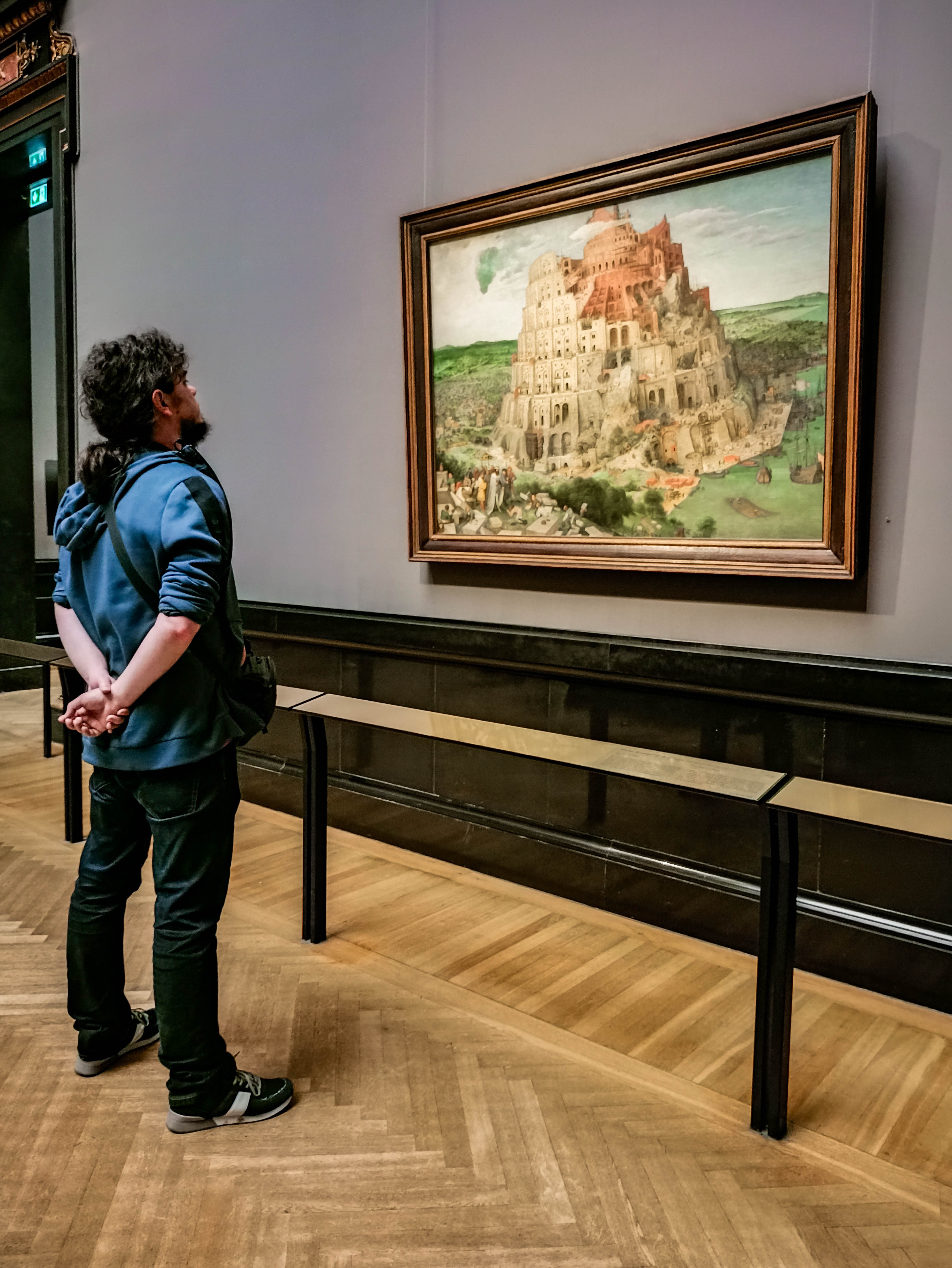 Bez wątpienia perłą w muzealnej koronie jest największa na świecie kolekcja obrazów Pietera Bruegla Starszego, wielkiego niderlandzkiego mistrza, ale i niezgorszego obserwatora życia, socjologa o humanistycznej duszy, moralizatora. W poświęconej wyłącznie jemu Sali X znajdziecie nie tylko najsłynniejsze jego dzieło, „Wieżę Babel” ale i szereg innych. Co niezwykłe, nie towarzyszyły nam tłumy i można było w spokoju spoglądać na pełne detali obrazy – coś co 5 lat temu, podczas specjalnej wystawy poświęconej Brueglowi było niemalże niemożliwe. A sami wiecie jak ważne przy takim artyście jest to by móc się w nim zatracić. Co więcej, kolekcję możecie podziwiać i z domu – specjalny serwis umożliwia spacer 3D po Sali X i daje namiastkę tego co niesie za sobą wizyta w muzeum. A gdybym pół roku temu był mądrzejszy to zwiedzając tę salę na podorędziu miałbym podcast Otulina_o_sztuce, Aleksandry Janiszewskiej-Cardone, kustoszki malarstwa niderlandzkiego w warszawskim MN. Wierzcie mi, jeśli chcecie posłuchać o Sztuce Dawnej niderlandzkiej->holenderskiej->flamandzkiej to lepiej nie mogliście trafić.