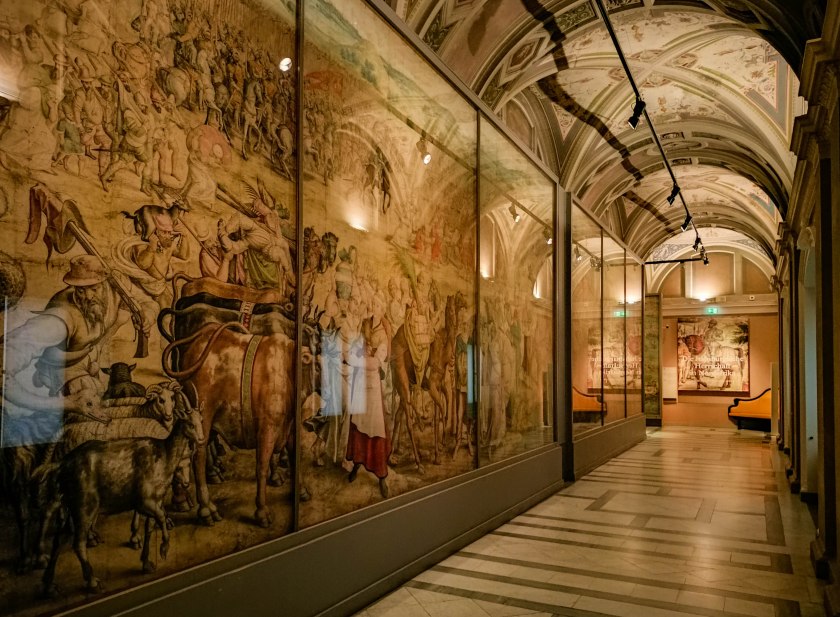 Po kilku godzinach zwiedzania nie mieliśmy już zbytnio siły na ostatnie piętro, najmniejsze kryjące kolekcję zabytkowych monet. Inna rzecz, że Bartu mówi wręcz, że sale były tymczasowo zamknięte. Kurczę, zupełnie tego nie pamiętam. Choć może wszystko ma związek z tym, że poza monetami można tam trafić na wystawę monumentalnych kartonów do tapiserii przedstawiających kampanię Karola V przeciwko Imperium Osmańskiemu. Obraz, potężny i długi na naście metrów przedstawiający walki o Tunis potrafi skupić na sobie uwagę. Dodając do tego kruchość i wrażliwość materiału trzeba kiwnąć z uznaniem dla konserwatorów.