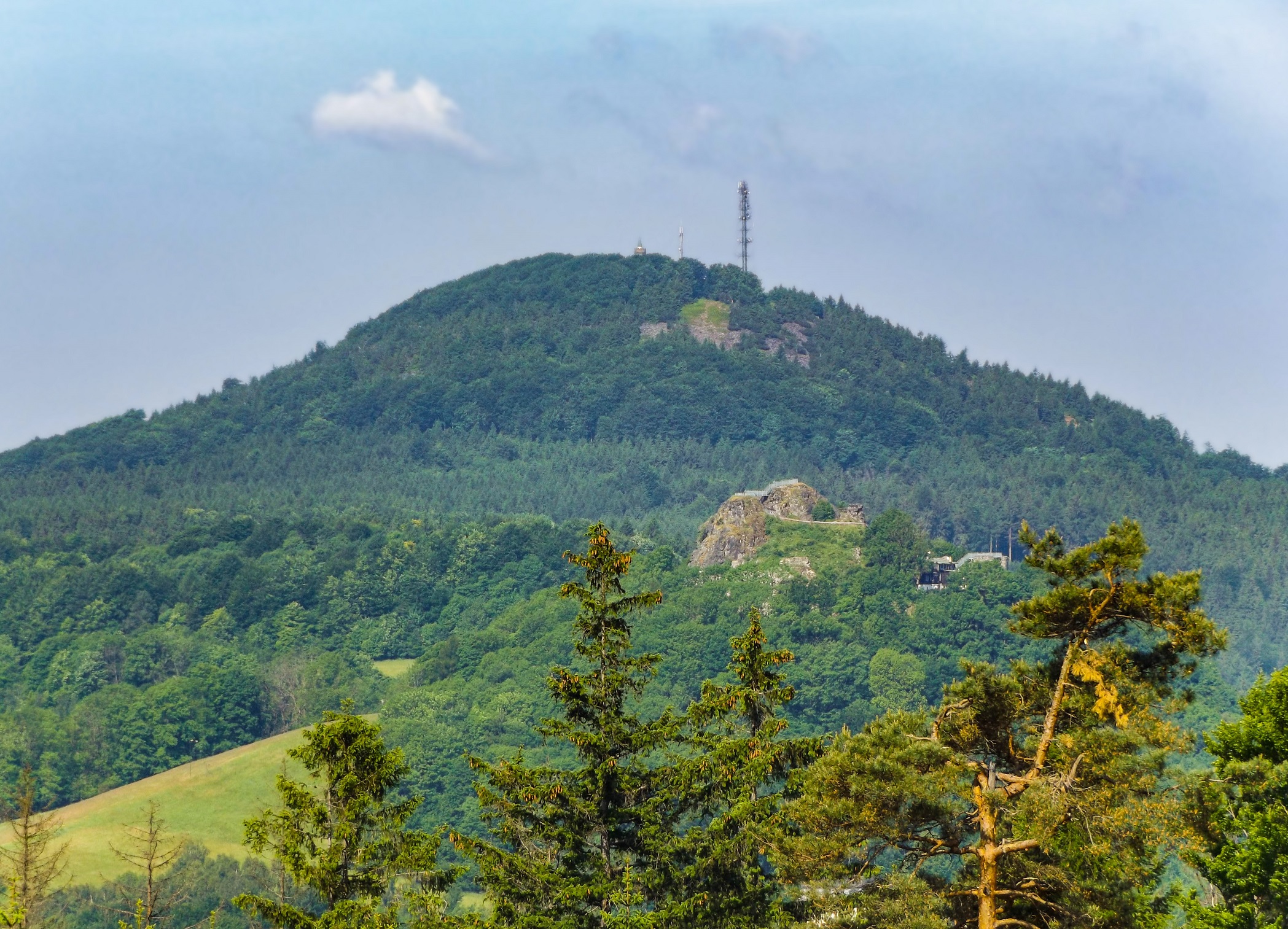 Kręcąc się po szczycie, w okolicy wieży TV traficie na jeszcze jeden punkt, z którego roztaczają się niezgorsze widoki. Spojrzenie na odwiedzony wcześniej Tolštejn jest stamtąd chyba najlepsze. Zalecam.