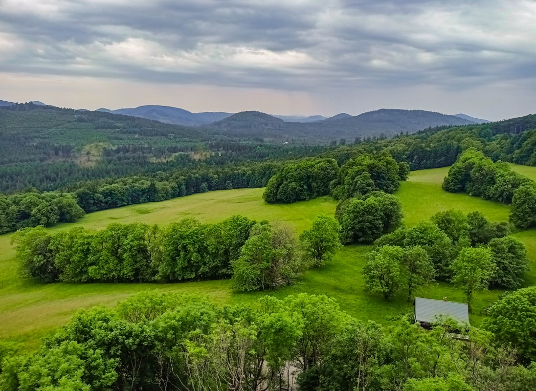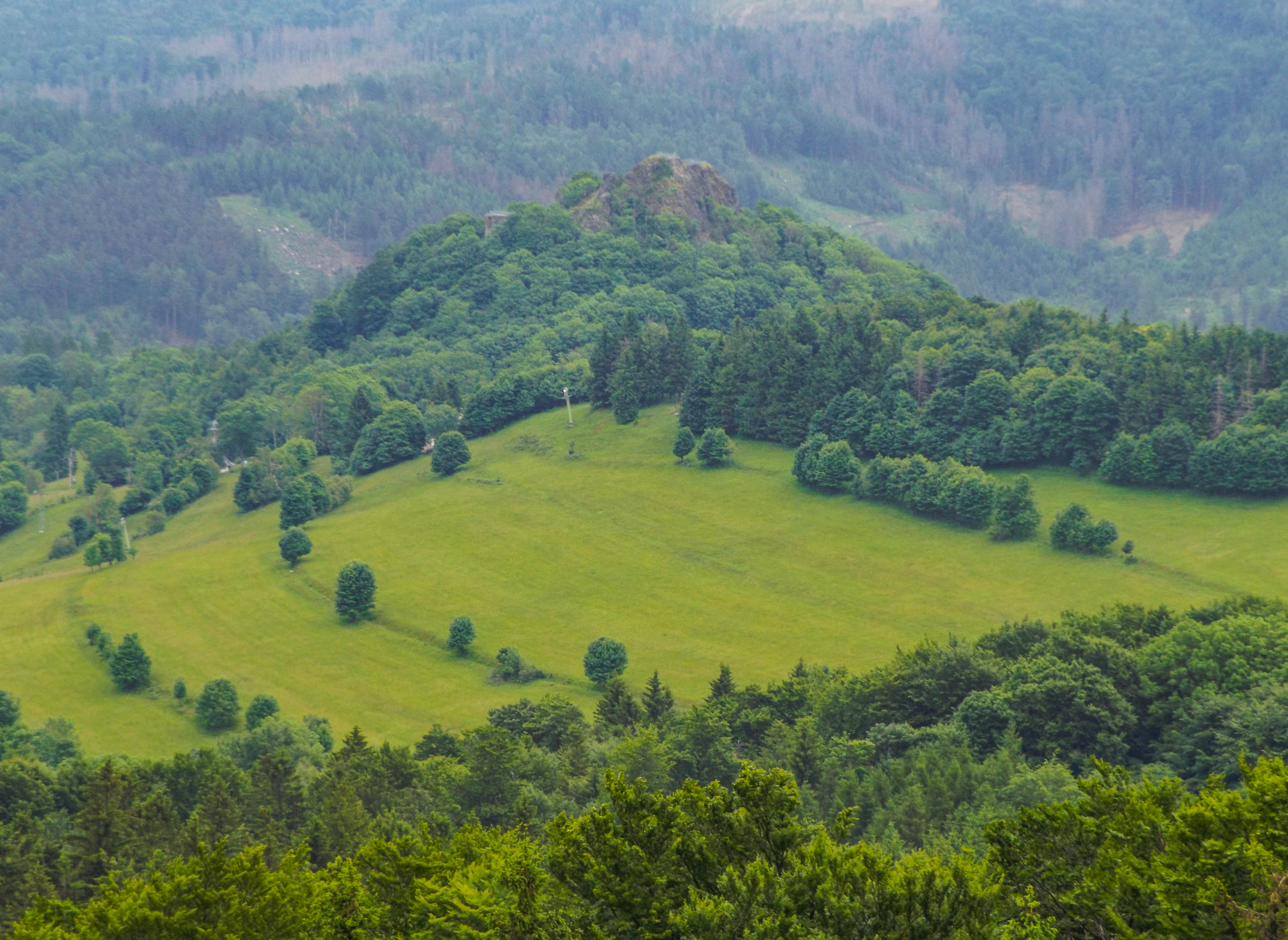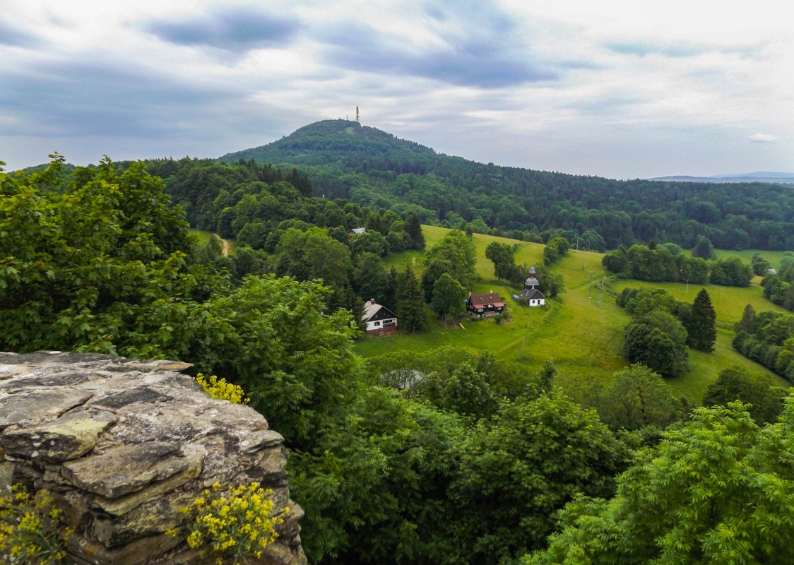 Tym razem wybierzemy się w drugim kierunku, lekko na zachód w kierunku Tolštejna, na którym podziwiać można wysłużone już ruiny średniowiecznego zamku. Zaraz potem wdrapiemy się na trzeci najwyższy pagór całego pasma, Jedlovą na której szczycie znajduje się kamienna wieża widokowa oferująca niezgorsze widoki na całą okolicę. Ba, ruiny na Tolštejnie wcale nie są gorsze i też można wiele z nich zobaczyć.