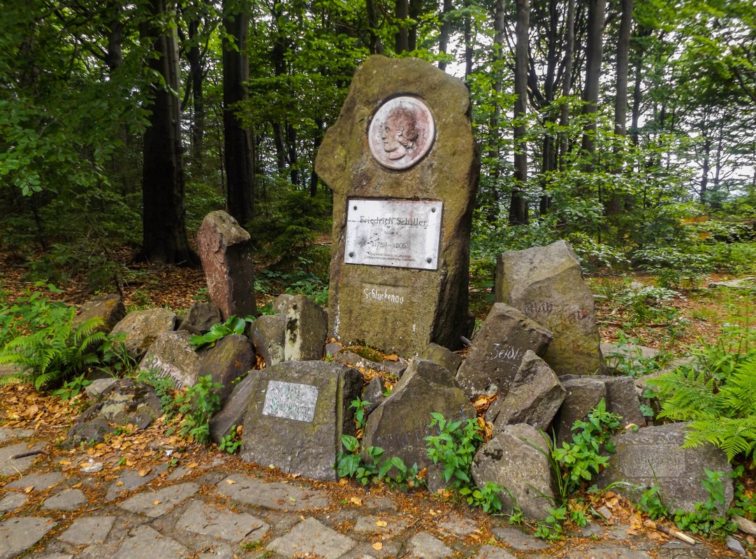 Przy wieży znajdziecie też pomnik poświęcony Friedrichowi Schillerowi, poecie, którego po nazwisku być może na szybko nie kojarzycie, ale z pewnością znany jest wam pewien jego poemat, rozsławiony przez Beethovena, który do słów dodał muzykę. „Oda do radości”, mówi to panu coś, panie Ferdku? 😉 Pomnik postawiono w 1905 roku, w setną rocznicę śmierci poety i w krótkim śledztwie nie udało mi się znaleźć informacji jakoby był on z Jedlovą w jakikolwiek sposób związany. Z pewnością jednak miał tu wielu miłośników, którzy zrzucili się i wspólnymi siłami sfinansowali powstanie monumentu. Pomnik podobnie jak wieża i chata miewał gorsze chwile (czyt. po 1945 roku podobizna Schillera została z pomnika zdjęta), lecz dziś szczęśliwie na powrót jest cały.