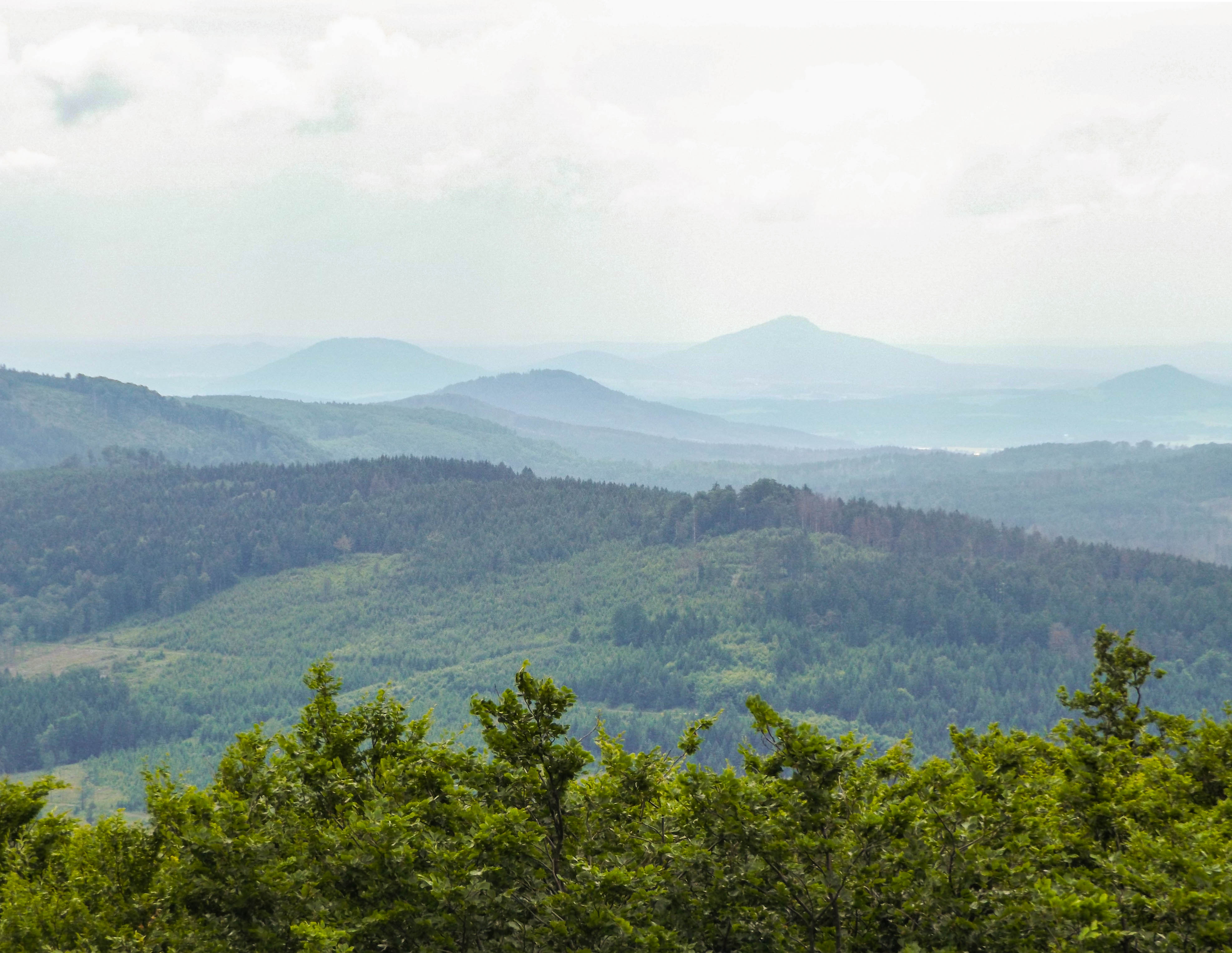 Przy dobrej pogodzie widoki z wysokiej na 23 metry wieży nie ograniczają się tylko do Gór i Pogórza Łużyckiego, ale  sięgają i Czeskiego Średniogórza, Jesteda, Gór Izerskich a nawet kawałka Karkonoszy. No i cóż, my trafiliśmy na warun pozwalający na podziwianie „raptem” Luža, Klica, Zelenego czy Zlatego vrcha. Też fajnie, choć krajobraz zaburza trochę nadajnik telewizyjny.