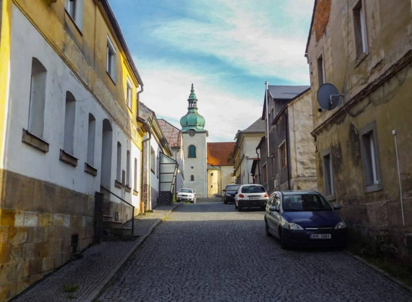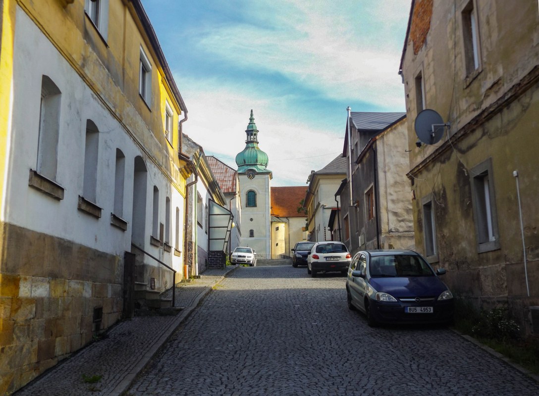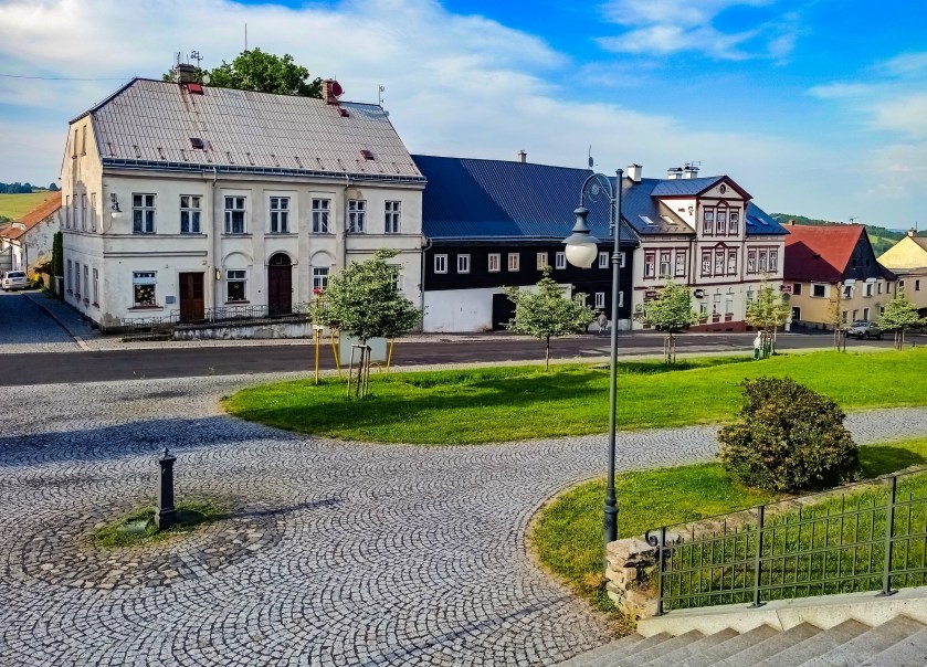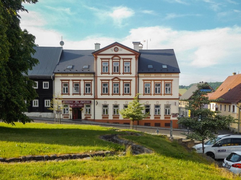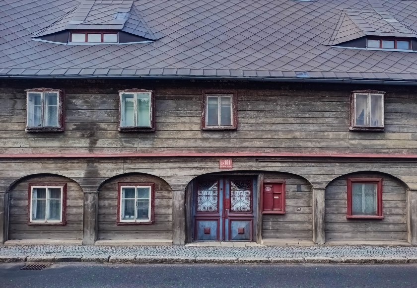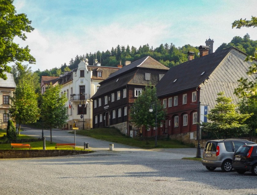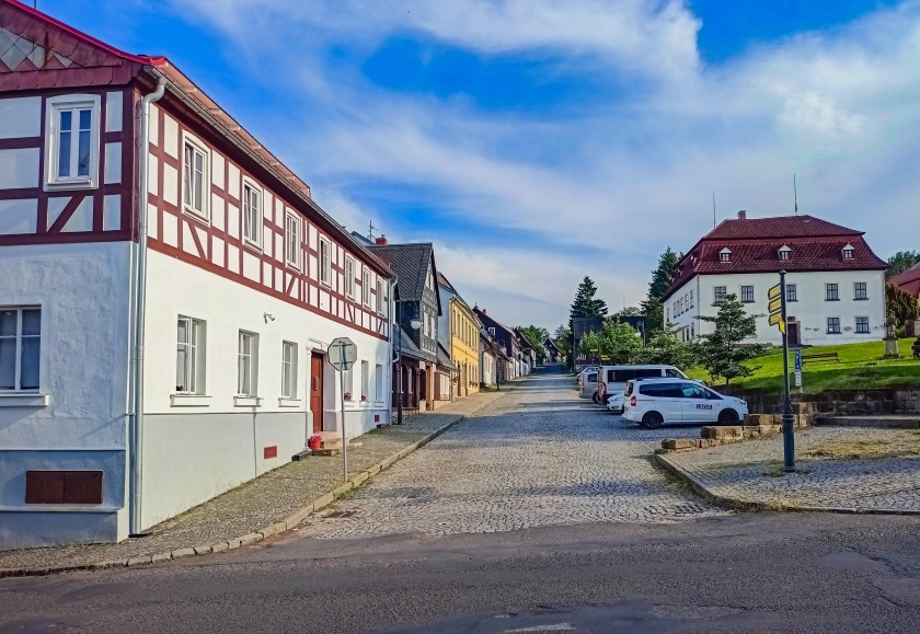 Bardzo lubię takie miejsca. Kompaktowe, pełne zabytkowej architektury, ciekawej historii no i po prostu ładnych widoczków, wszystko blisko siebie. Każda kolejna miejscowość Gór Łużyckich ma swój sposób na przyciągnięcie uwagi, wszystkie jednak łączy jeden element: domy przysłupowe. Nie inaczej jest tutaj, gdzie naprawdę nieźle zadbane domy pamiętające jeszcze XVIII wiek przyozdabiają każdy najważniejszy fragment miasta. A raczej wsi, bo choć Jiřetín może wydawać się całkiem „miastowy” to jednak praw miejskich od kilku dziesięcioleci już nie posiada.