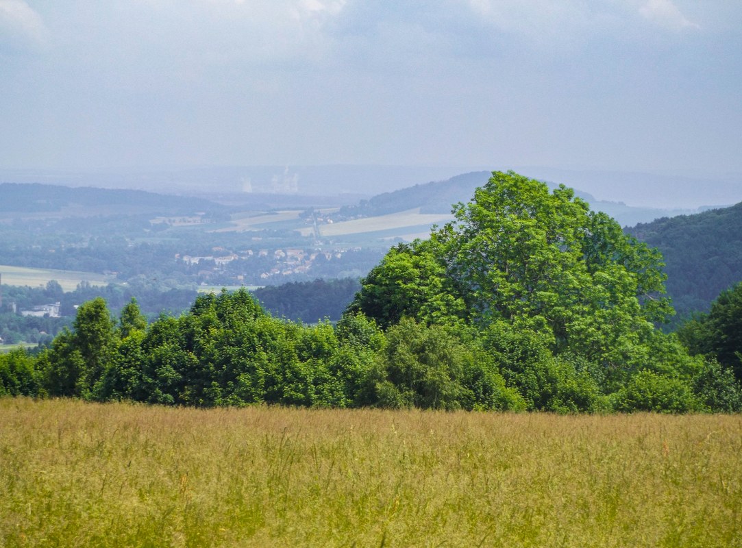 Spacer z Jiretina potrafi rozgrzać mięśnie i nawet jeśli nie chcecie kontynuować marszu na Jedlovą (choć pewnie chcecie, albo stamtąd wracacie) to warto wspiąć się jeszcze dosłownie kawałek, ponad linię drzew na bardzo fajny punkt a wręcz polanę widokową. Tolstejn prezentuje się stamtąd obłędnie a wprawne oko dostrzeże i kominy naszej kopalni Turów.