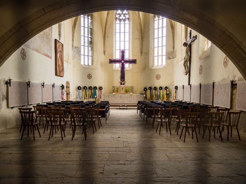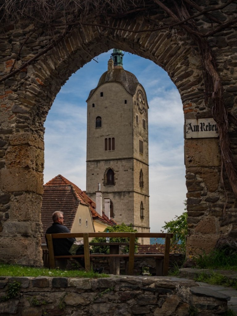 Dwie górujące nad ratuszem wieże to wieże dla Stein chyba najbardziej emblematyczne, to one występują na większości naddunajskich pejzaży przedstawiających miasto. Pod pierwszą z wież wspinamy się wąską uliczką na skalną półkę Frauenberg. Oferuje ona kapitalne widoki na okolicę, i prawdopodobnie na niej powstały pierwsze zabudowania osad poprzedzających Stein. Znajdziecie tu kościół Wniebowstąpienia NMP, niewielką XV-wieczną gotycką świątynię z imponującą osobną wieżą. Przed ponad dwoma stuleciami zsekularyzowany, od kilkudziesięciu lat służy za mauzoleum poległych w obu wojnach światowych. Ciekawostką jest to, że wieża kościoła nosi nazwę Alte Michl nawiązującą… do starszej, nieistniejącej już świątyni.