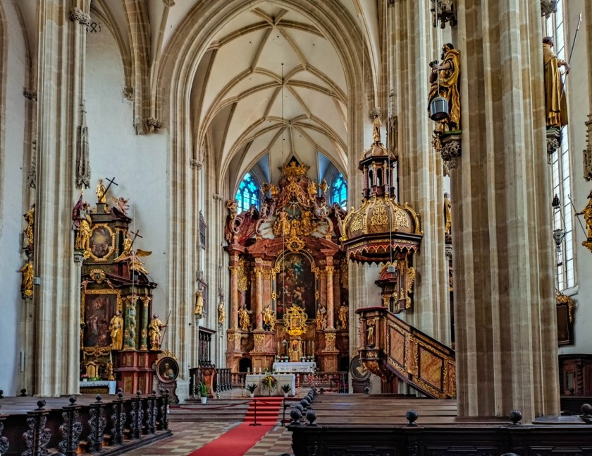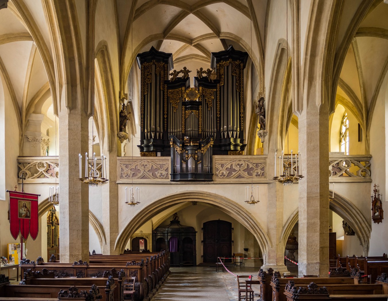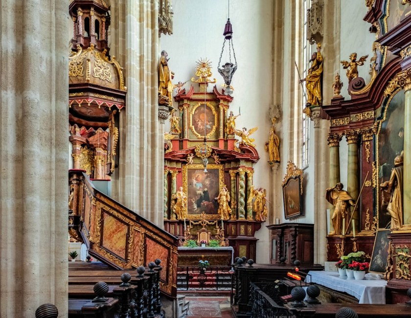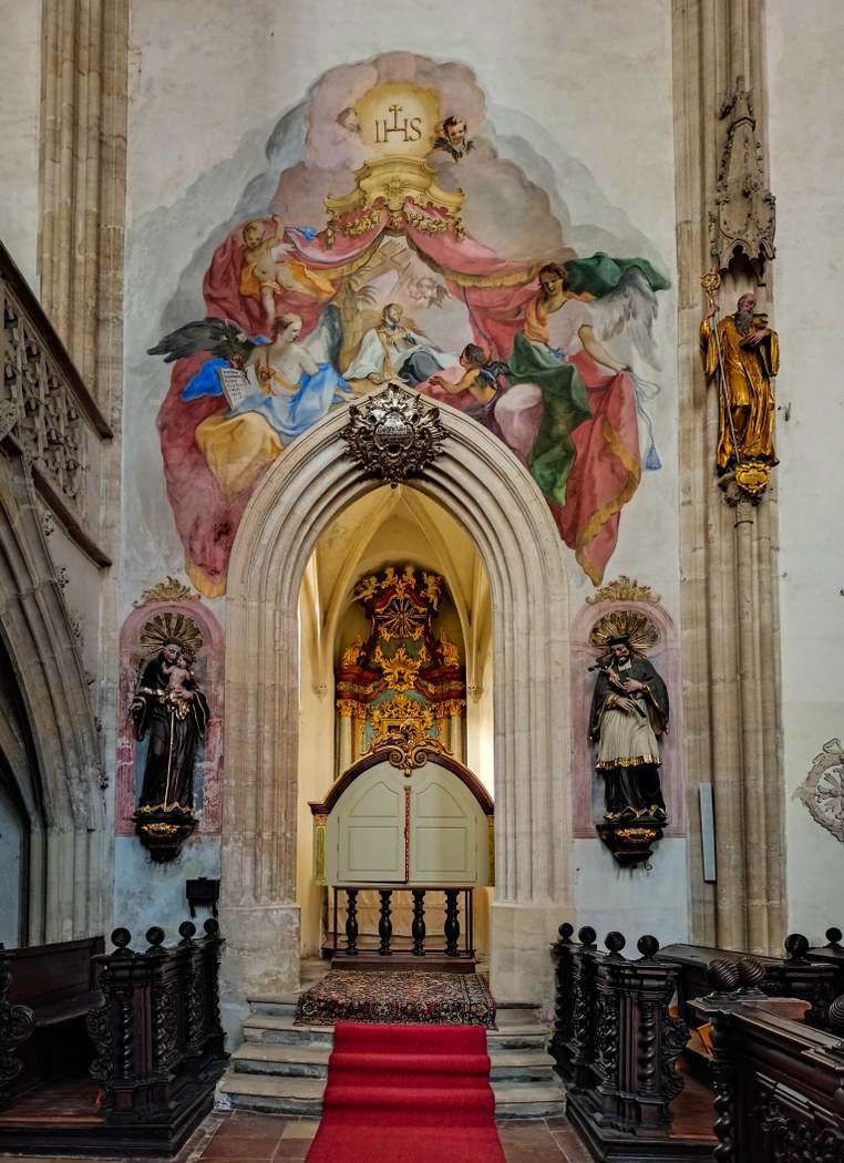 Tak jak i u barokowego sąsiada tak i tu znajdziecie mnóstwo sakralnych dzieł sztuki, zgrabnie łączących gotycki chłód (ale i precyzję) z barokowym przepychem – Martin Johann Schmidt oraz Joseph Matthias Götz ponownie meldują się na służbie! Już z zewnątrz niewielki, ale diablo ciekawy gotycki portal spotyka się z intrygującą barokową Drogą Krzyżową. Wewnątrz pod pięknymi gotyckimi sklepieniami pysznią się barokowe ołtarze, pod gotyckimi, misternie rzeźbionymi baldachimami miejsce dla siebie znalazły pozłacane barokowe rzeźby. No dogadały się tu oba style, dogadały.