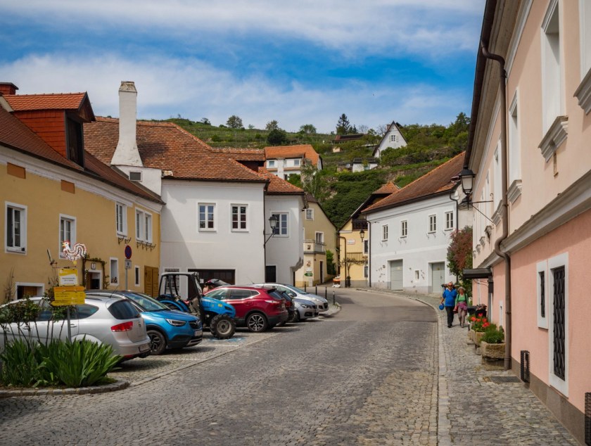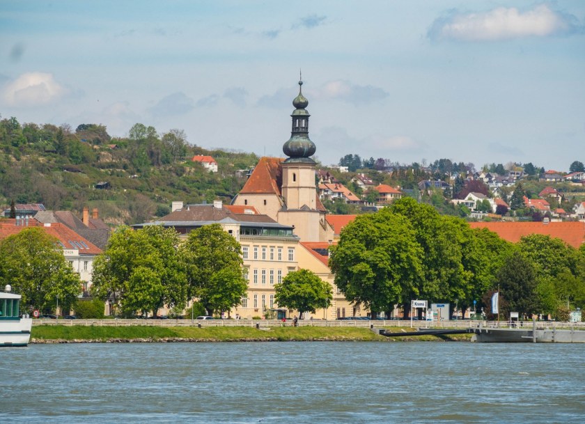 Nadrzeczną promenadą co chwilę mkną rowerzyści pokonujący długodystansowy szlak Donauradweg Nordufer, i zapewne gdyby nie to, że w planach mieliśmy skosztowanie miejscowego wina to skusilibyśmy się choćby na pokonanie fragmentu. Wam w każdym razie bardzo polecam, dla samych widoków już warto. Widoków, którymi przed laty zachwycali się malarze najróżniejszych epok, od romantyzmu przez impresjonistów po… Egona Schiele, którego sami przyznacie trudno i nie wiem nawet czy trzeba szufladkować.