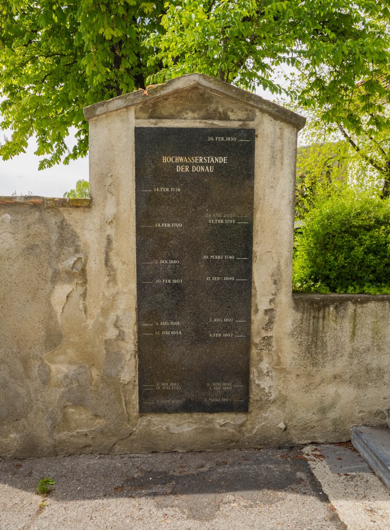 Dunaj był tego dnia spokojny, gdzieś w oddali cumował długodystansowy prom. Niech was jednak ten sielski krajobraz nie zmyli, Dunaj choć szeroki potrafi wezbrać tu niemało, o czym najczęściej przekonuje się położony najbliżej rzeki budynek klubu wioślarskiego. Co więcej, kawałek dalej, kilkadziesiąt metrów od rzeki na tablicy widać najwyższe poziomy jakie Dunaj tu osiągał, i o rety, przełom zimy i wiosny 1830 roku musiał być przerażający.