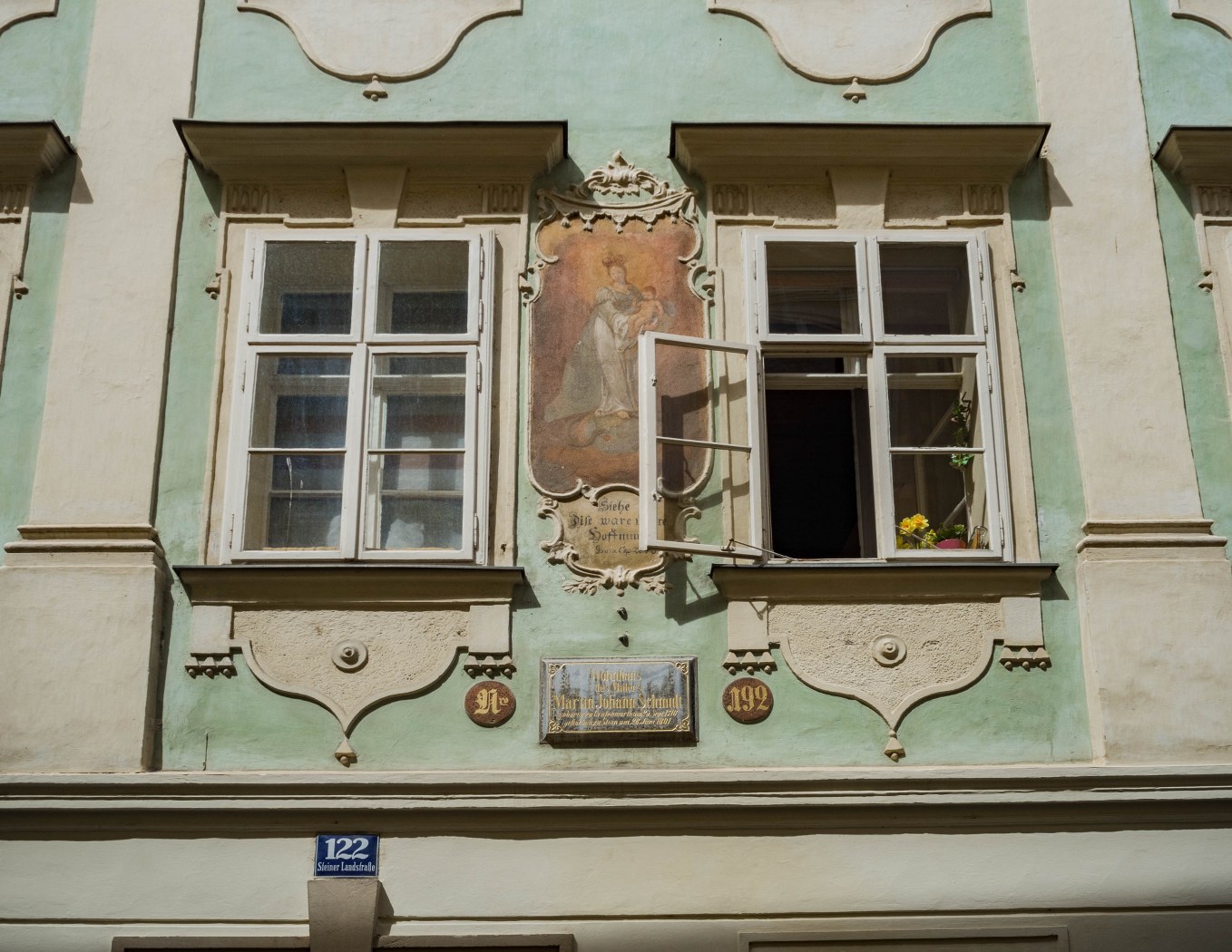 Wracając szybko do pierwszej z bram – w jej bezpośrednim sąsiedztwie przez wiele lat mieszkał Martin Johann Schmidt, malarz czerpiący pełnymi garściami z baroku, jedna z najznamienitszych postaci związanych z miastem. Jego freski przez długi czas ozdabiały ściany miejskich wrót, lecz dziś cóż, jedyne co po nich zostało to malunek Maryi z małym Chrystusem na elewacji sąsiedniej kamienicy, tej przez Schmidta zamieszkiwanej.