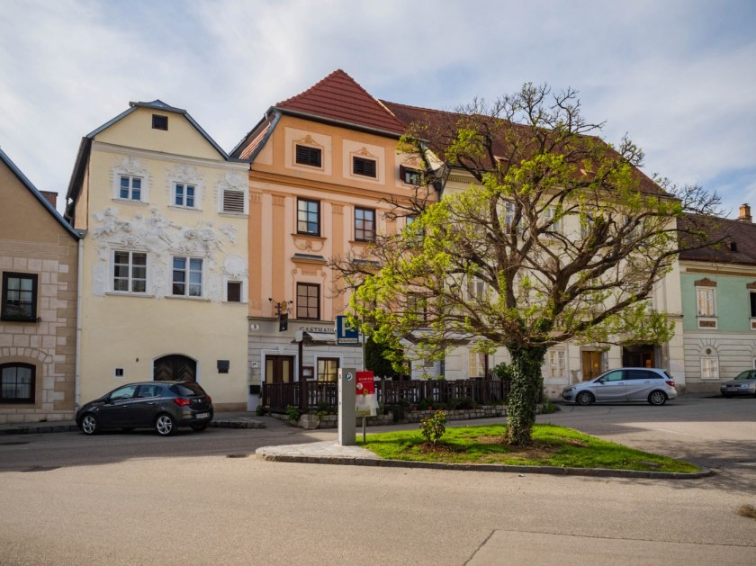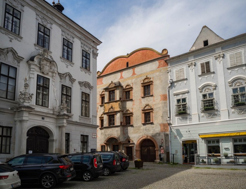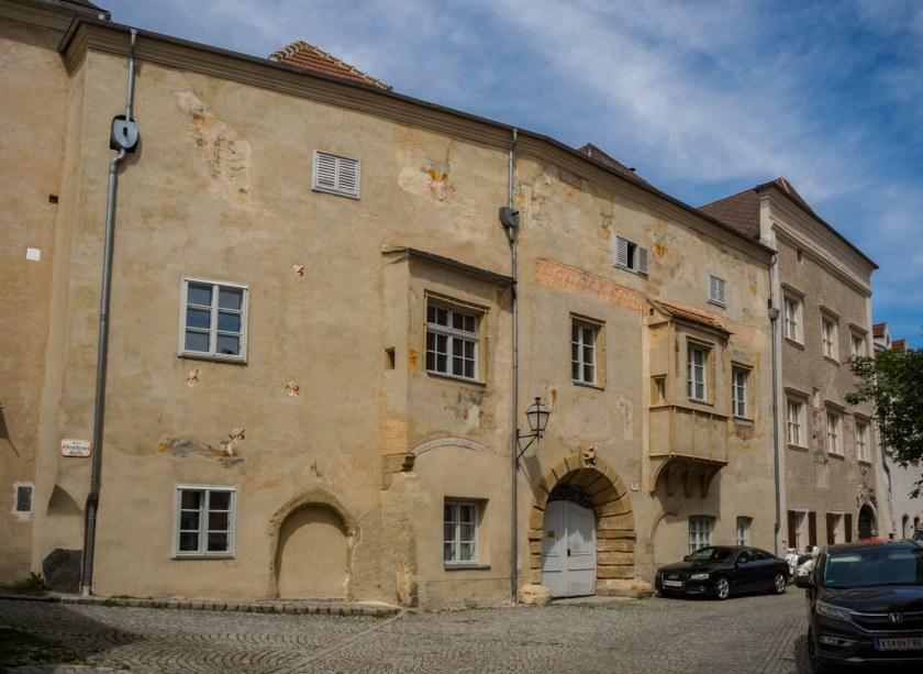 Wszechobecne są wykusze, wsparte na konsolach wystające piętra, jest w końcu i creme de la creme, blankowany szczyt Grosse Passauerhof, jeden z najciekawszych przykładów renesansu w całej Dolnej Austrii. W imponującym 3-piętrowym budynku przyszedł na świat jegomość ważny dla miłośników Wolfganga Amadeusza Mozarta – Ludwik Köchel, który to wsławił się gargantuiczną pracą skatalogowania wszystkich dzieł wybitnego kompozytora. Kamienica jest pierwszym przystankiem tematycznego spaceru śladem muzyki w Stein und Krems i jeśli tylko macie ochotę to łapcie link do strony stowarzyszenia, który poprowadzi was dalej m.in. do miejsca narodzin babki Mozarta (czyli niedaleko bo zaraz w sąsiednim budynku) czy matki Franciszka Liszta.