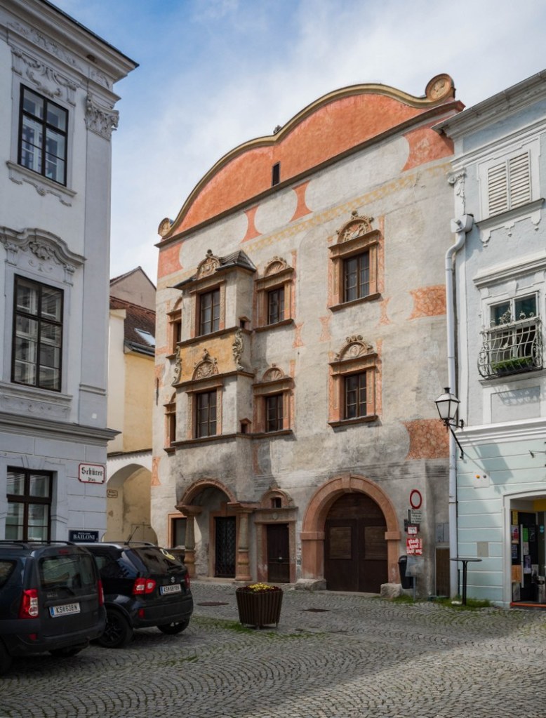 Świadectwo tego jak bogatym miastem Stein było już na przełomie XV i XVI wieku zobaczycie w pięknych i wciąż imponujących kamienicach o gotyckiej proweniencji, rozbudowanych później przez renesansowych i barokowych architektów. Kilkuset letnie sgraffita i malowidła na elewacjach nie są rzadkością i przy wsparciu mnogości rzeźbionych detali potrafią wiele powiedzieć o dawnych mieszkańcach – motywy biblijne i religijne, florystyczne pozostałości po grotesce, płaskorzeźby bezpośrednio nawiązujące do Habsburgów, podpisy w postaci herbów rodowych. Ot choćby dawny dom poborcy cła z podobizną Ferdynanda I i Anny Jagiellonki czy kamienica Christopha Holzingera z dwoma różnymi herbami rodowymi i naprawdę nieźle zachowanymi malowidłami Św. Floriana i Lukrecji.