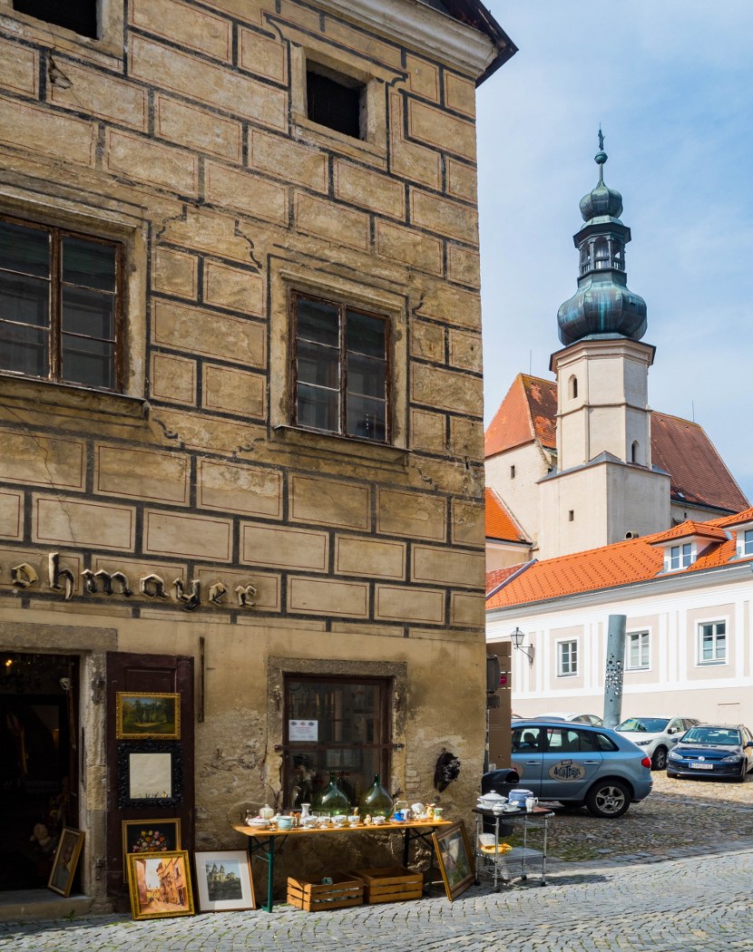 Tym co od razu rzuca się w oczy jest zdecydowanie bardziej barokowy charakter Krems. Jasne, wiele kamienic i tu proweniencję ma zdecydowanie starszą, ale w przeciwieństwie do sąsiada architekci, rzeźbiarze czy tynkarze mieli tu w XVII i XVIII wieku ręce pełne roboty nadając gotyckim budowlom bardziej współczesną formę. Dzięki czemu podziwiać możemy piękne elewacje z misternymi dekoracjami… poznając niejako słabość miejscowych artystów do postaci Jana Nepomucena. Żartuję oczywiście, ale faktycznie czeski święty ma w miasteczku szczególne poważanie i znajdziecie go tu nad wyraz często.