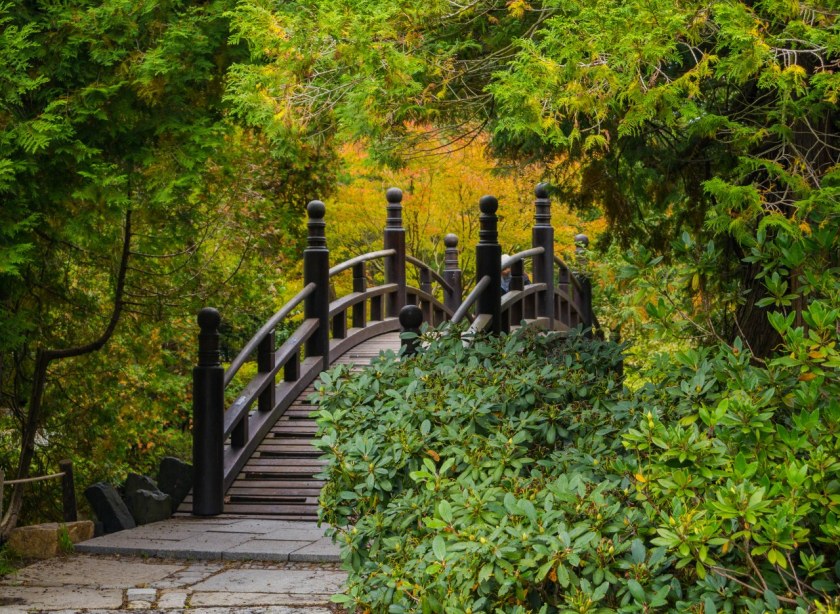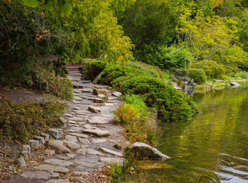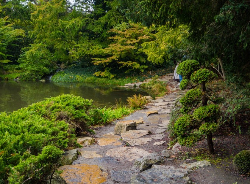 Dla mnie sercem ogrodu jest jednak staw. To wokół niego przed laty zaaranżowano ogród pierwotny, to spacer jego brzegami (wraz z pokonaniem przecinających go mostów) pozwala w pełni docenić całe założenie. Na stawie znajdziecie trzy mosty, każdy inny, każdy zanurzony w swojej symbolice. Czy złamana forma Yatu hashi rzeczywiście chroni przed siłami nieczystymi. Czy stromy, emblematyczny dla japońskich ogrodów Taiko Bashi jest alegorią trudów życia przed wstąpieniem do niebios?
