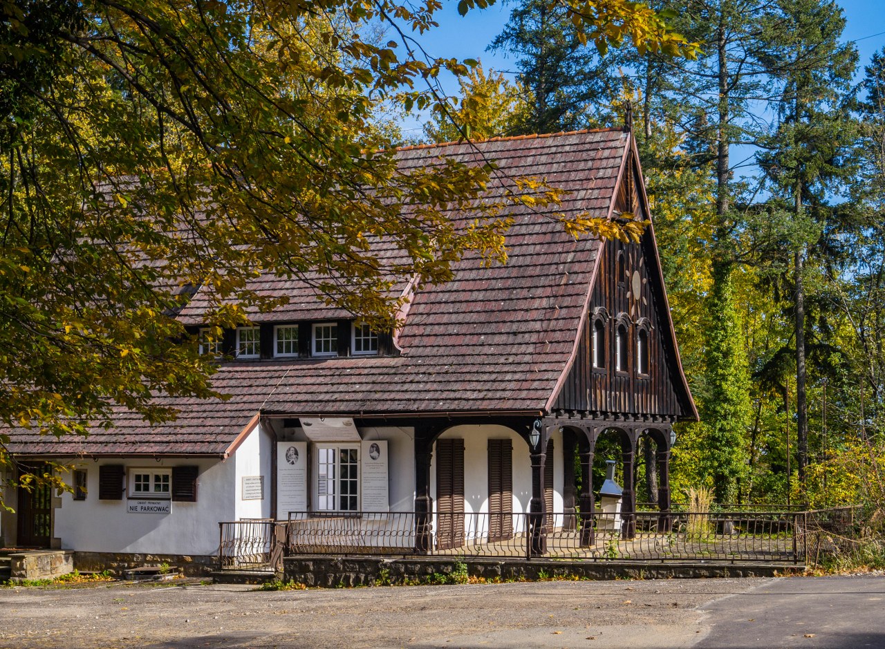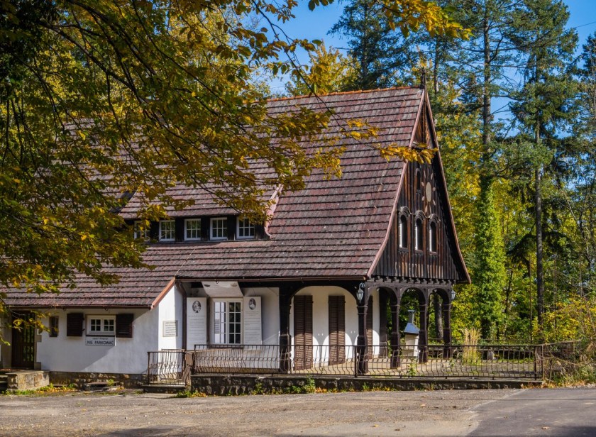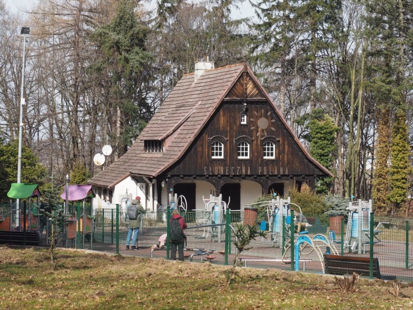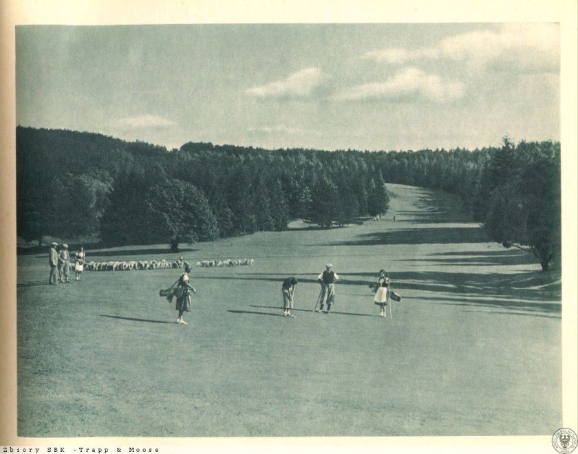 I teraz wyobraźcie sobie, że cały ten obszar, niemal spod samego szczytu, przez jeziorko i tor crossowy aż po Słoneczną Polanę służył kiedyś za… pole golfowe! Tak, tak, kilka lat po zakończeniu I Wojny Światowej książę Jan Henryk XV Hochberg, wielki entuzjasta golfa postanowił dołożyć kolejną cegiełkę do atrakcyjności ówczesnego wciąż jeszcze Bad Salzbrunn. Powstałe pole liczyło sobie 18 dołków i dość szybko, po pewnych modyfikacjach stało się rozpoznawalne przyciągając niezgorszych graczy, goszcząc również ot choćby Mistrzostwa Niemiec. Dziś po polach nie ma rzecz jasna śladu, a jedynym co pozostało z inicjatywy pszczyńskiego księcia jest dawny domek klubowy. Piękny budynek z drewnianymi podcieniami sąsiaduje dziś z placem zabaw i siłownią na świeżym powietrzu – tak więc można powiedzieć, że czasy się zmieniły i sposób wypoczynku również… choć czytałem, że istnieją plany przywrócenia Szczawna na golfową mapę Europy.