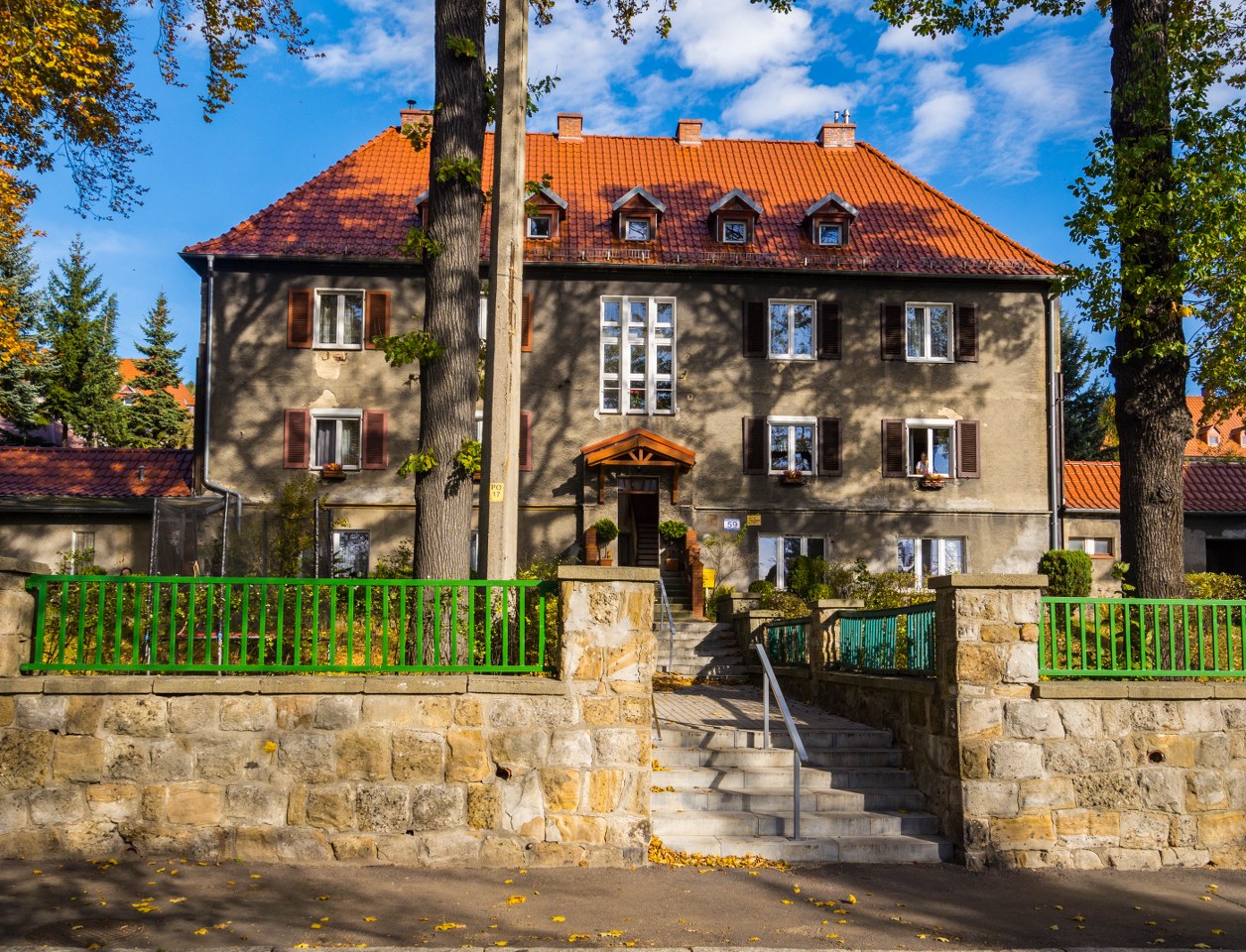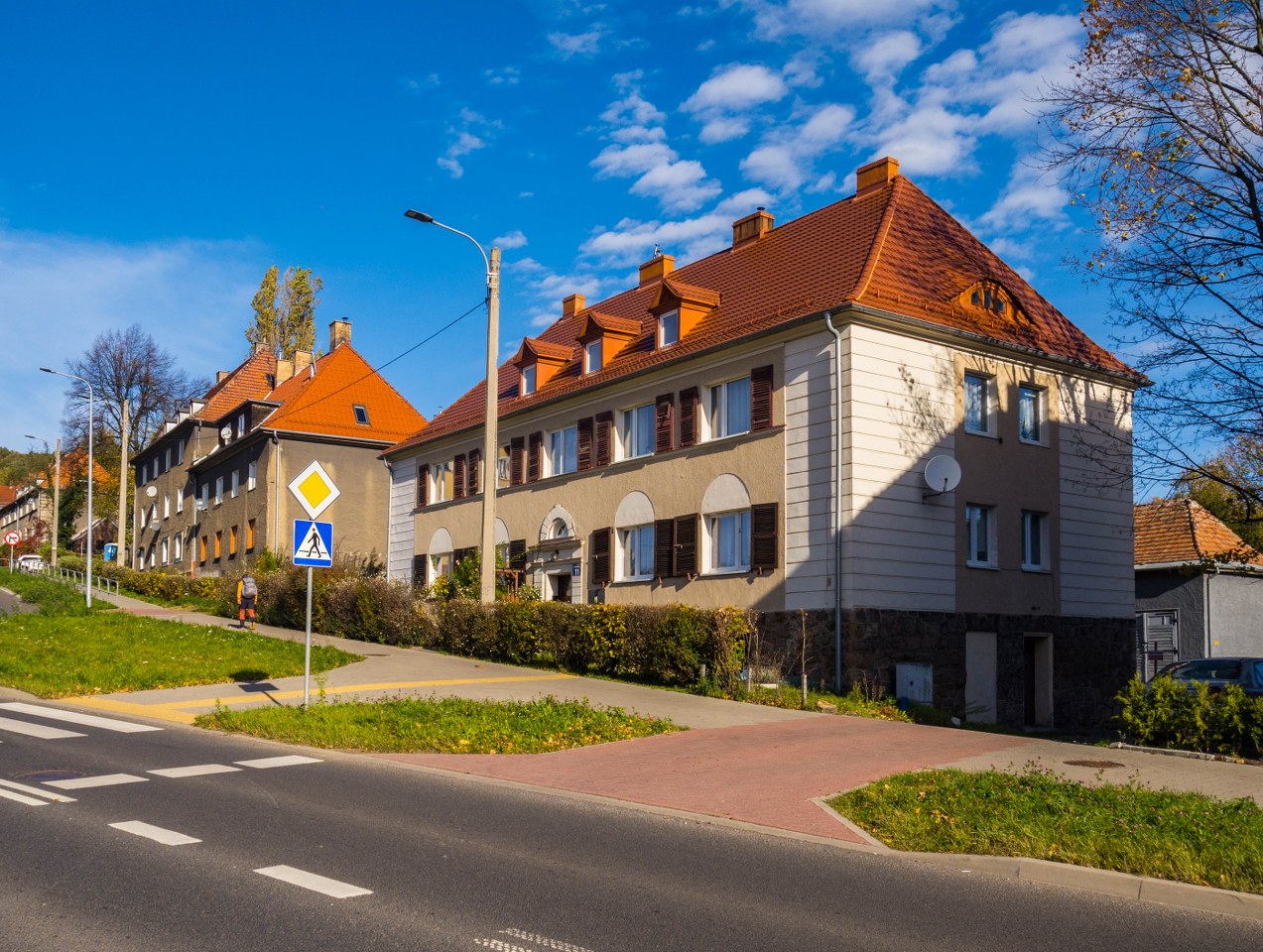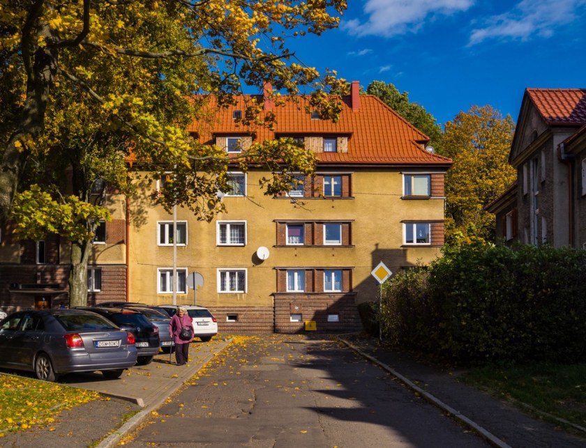 Wiele osób pewnie wzruszy ramionami, uznając ciągnące się wzdłuż ulicy Żeromskiego budynki za niewarte uwagi. Spoko, pewnie dawniej też bym tak miał, ale z wiekiem zacząłem jakoś tak bardziej doceniać międzywojenne idee. Mijane osiedle jest dziełem projektu nie byle kogo, bo berlińskiego architekta Hermanna Jansena (z dalszymi pomysłami nie mniej znanego i z Wałbrzychem silnej związanego Otto Rogge). Jak na swoje czasy były to pierwsze na Dolnym Śląsku osiedla, w których prócz architektury i funkcjonalności tejże sporą rolę odgrywać miała zieleń, tak ta w postaci małych ogródków, skwerków i placów jak i wiekowych lip, buków i dębów, które współtworzyć miały zwartą kompozycję z powstającymi wówczas wielorodzinnymi domami. I choć przez 100 lat trochę się zmieniło to i tak wygląda na to, że sporo z zielonej przestrzeni na osiedlu pozostało a dawne budownictwo wciąż trzyma się mocno (no może, nie każdy budynek, ale cii :P).
