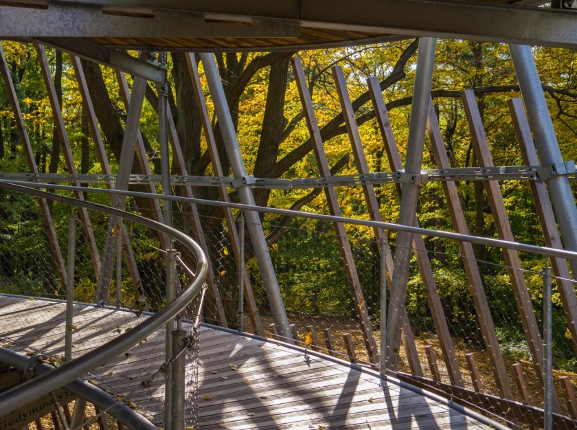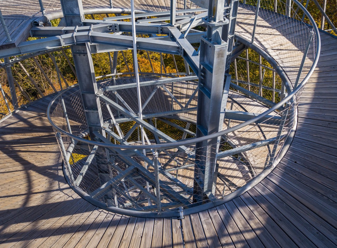 Wspomniana wieża na Borowej nie bez przyczyny może wydawać się podobna, wszak za jej budową stoi ten sam wykonawca. Nie dajcie się jednak zmylić, bliźniacza z zewnątrz kryje w sobie rozwiązanie czyniące z niej unikat na całym Dolnym Śląsku. Mowa o łagodnej, spiralnej, drewnianej ścieżce prowadzącej na sam szczyt wieży (i jedną platformę po drodze). Dzięki takiemu rozwiązaniu na wieżę z powodzeniem mogą wspiąć się osoby, dla których setki schodów byłyby przeszkodami nie do pokonania – rodzice z dziećmi w wózkach czy osoby z niepełnosprawnościami. I jasne, nie jest to rozwiązanie idealne bo wjazd (i tym bardziej zjazd) na wózku jest wykonalny, ale i męczący a przy niekorzystnych warunkach wręcz niemożliwy. No, ale i tak jest to krok w dobrą stronę.