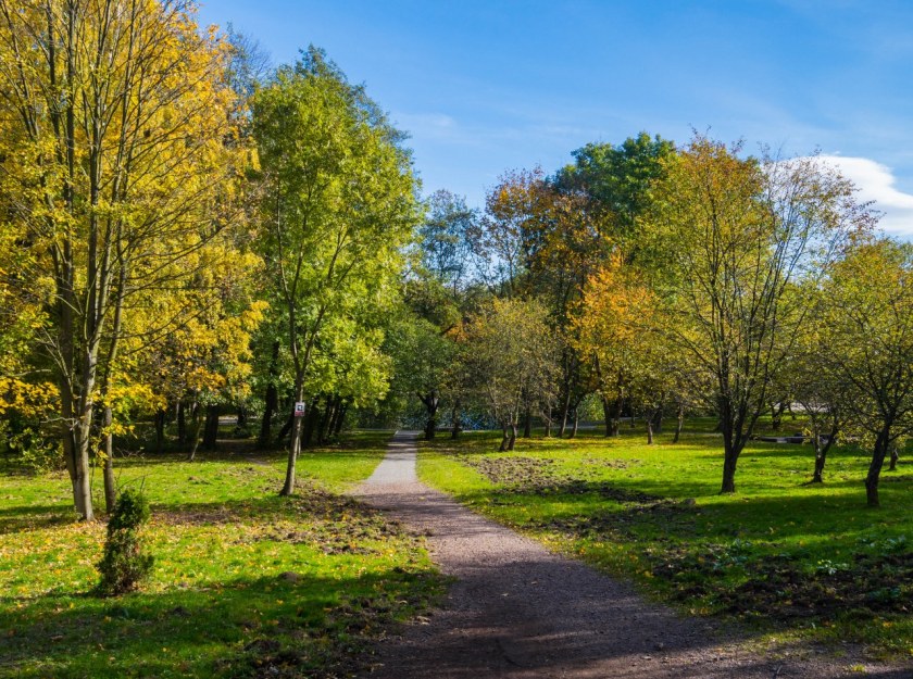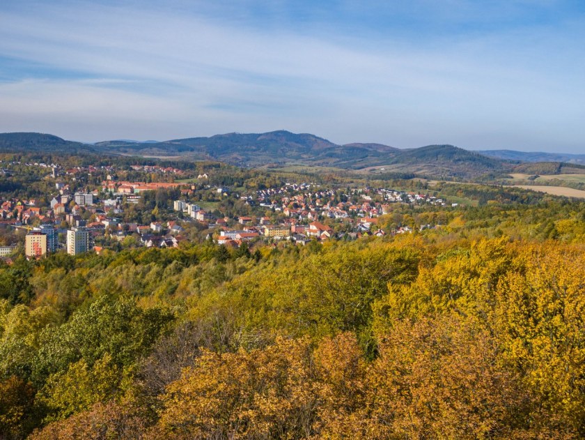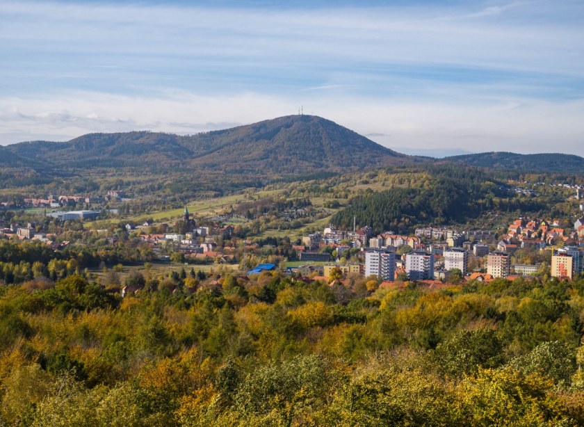 Nie o dołowanie jednak w tym wpisie chodzi, tak więc smutne tematy zostawiamy za sobą skupiając się na pięknej jesiennej aurze i równie pięknych widokach, które towarzyszyć nam będą w czasie, krótkiego i przyjemnego spaceru niebieskim szlakiem na Wzgórze Gedymina. Pagór to niewysoki, mierzący ledwo 532 metry, oddalony od stacji Wałbrzych Miasto o dwa kilometry i odległość tę powinniście pokonać w mniej więcej 45 minut. Znaczy się, pewnie uwiniecie się szybciej chyba, że tak jak ja podziwiać będziecie zabudowę wzniesionego po drodze w latach 20. XX wieku modernistycznego osiedla.