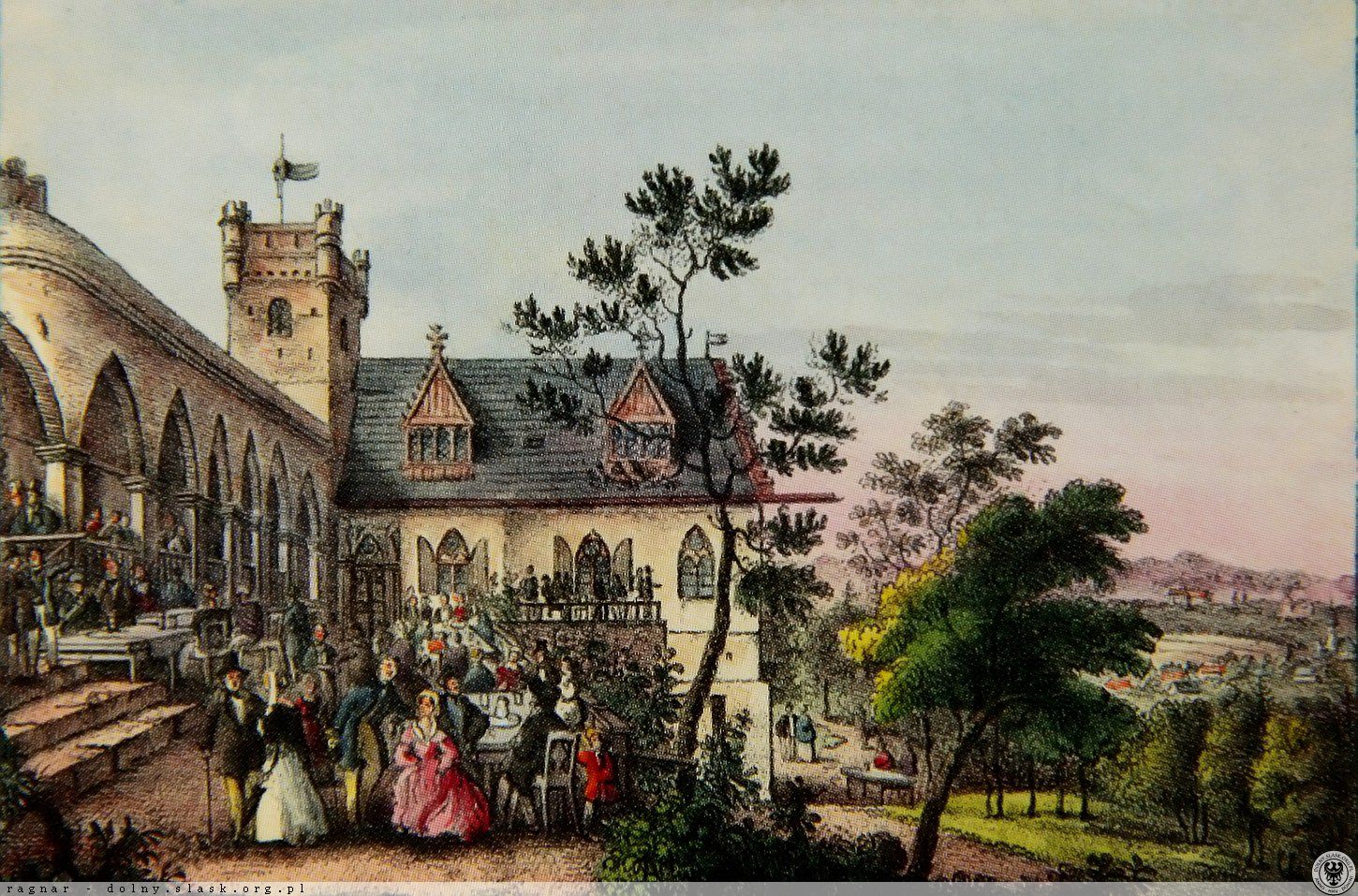 532 metrowy pagór, przed laty, jeszcze w XIX wieku upatrzył sobie lekarz z pobliskiego Bad-Salzbrunn (czyli naszego Szczawna-Zdroju), z którego to inicjatywy wybudowano nań niewielki pawilon i drewnianą wieżę widokową dla kuracjuszy spacerujących po Parku rozwijającego się uzdrowiska. Szybko okazało się, że miejsce to przyciągało tłumy zdecydowanie przekraczające możliwości niewielkiego budynku, dlatego też pawilon zastąpiony został dużo większą budowlą, z okazałą wieżą, salą restauracyjną i klimatycznymi podcieniami. Mały zamek jak się patrzy a widoki z niego klawe jak cholera, dlatego też nie dziwi jego nazwa Belweder.