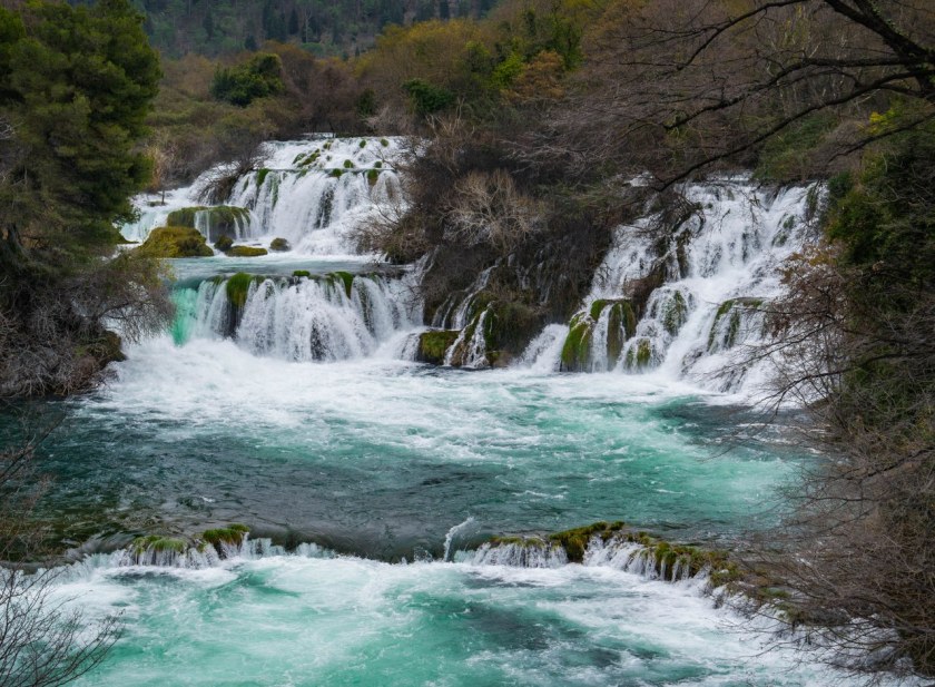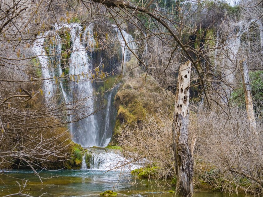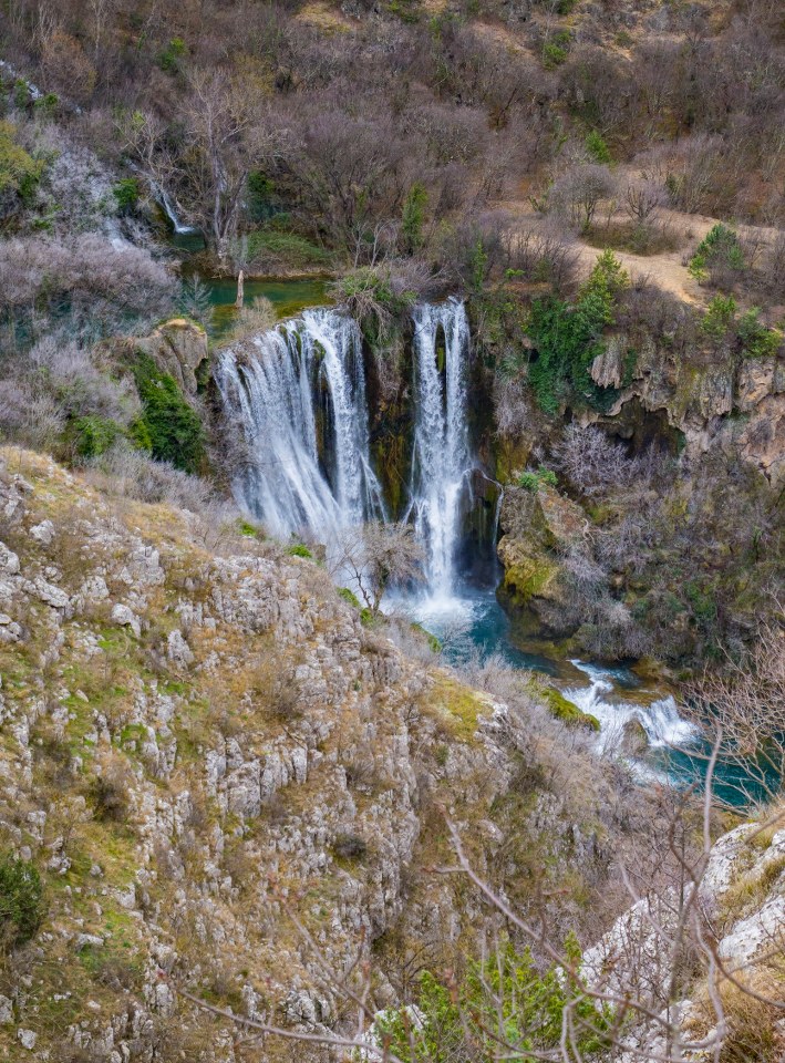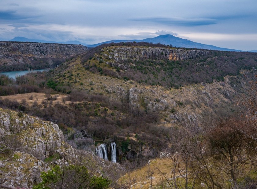 Ruszamy dalej na północne rubieże Parku, gdzie Krka wciąż malowniczo wije się w wysokim na 200 metrów kanionie. Meandrująca rzeka w lutowym, surowym anturażu robi diablo ciekawe wrażenie a wodospady korzystają z ostatniej chwili bycia na pierwszym planie, lada dzień roślinność wybuchnie zielenią i to ona grać będzie pierwsze skrzypce.