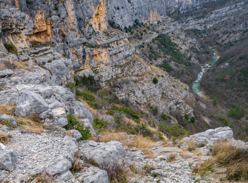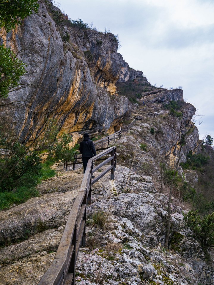 Wysoki na prawie 200 metrów kanion, ścieżka prowadząca do punktów widokowych, tyrolka w kilka sekund zabierająca na drugi brzeg (raczej tylko latem), jaskinie, via ferraty i nieomal 300 dróg wspinaczkowych. No jest to totalnie bombowe miejsce a widoki na szare skały i ledwo co widoczną rzekę sprawiają, że człowiek czuje się mały. Sam szlak w wersji bezpiecznej ma długość około kilometra a via ferraty ciągną się kolejne 2 kilometry – dla ciekawskich trudność określa się na B/C.