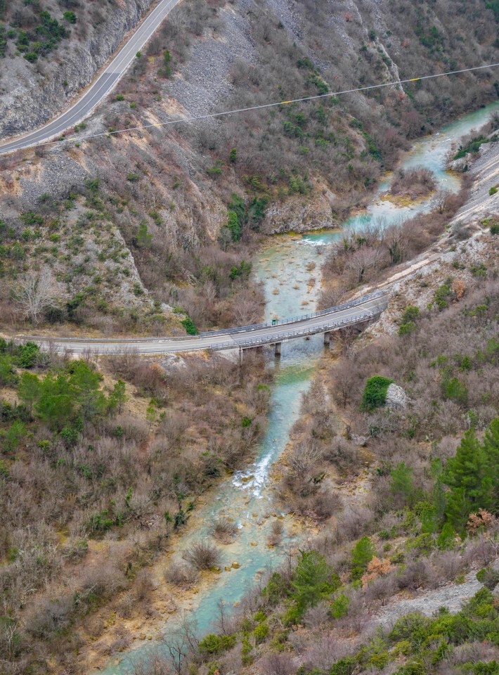 Jazda do Lozovaca zabiera niespełna 20 minut. Parking świeci pustkami, ale i tak z racji lutego można zjechać na sam dół do postoju przy rzece – w sezonie kursują tam busiki, jest też ścieżka. Po drodze, przy zerowym ruchu robimy szybki stop na zrobienie zdjęcia niepozornej z oddali rzeki.