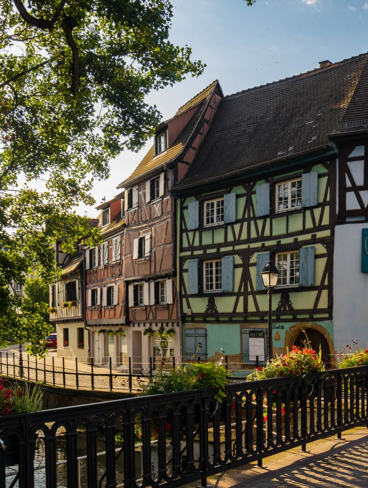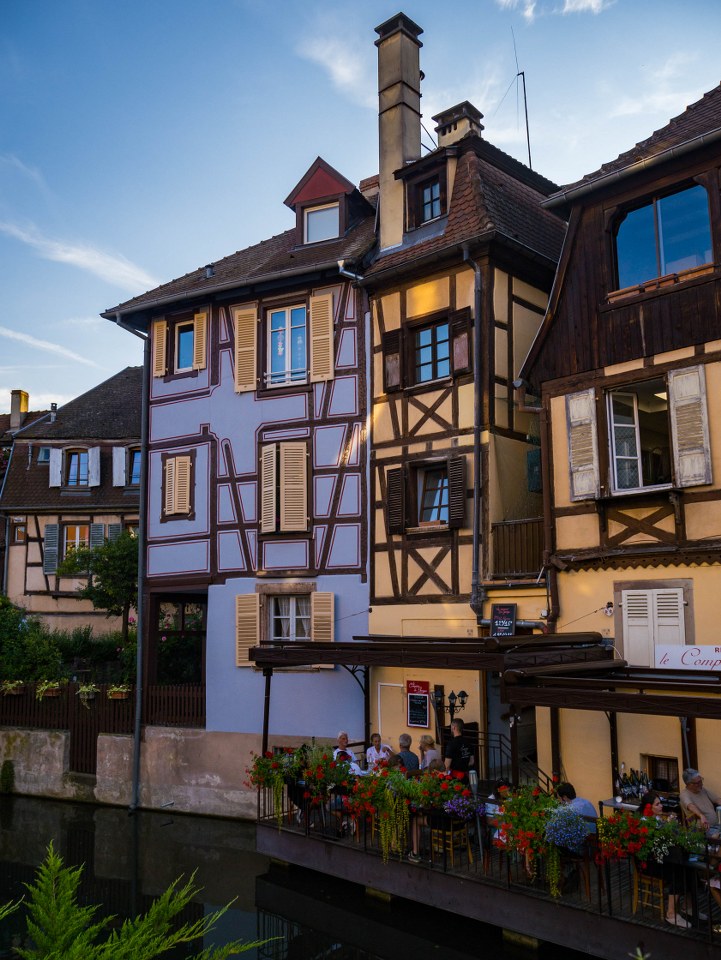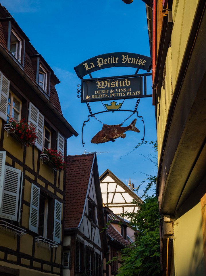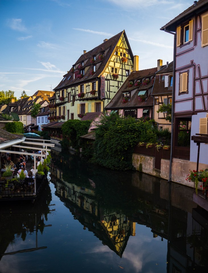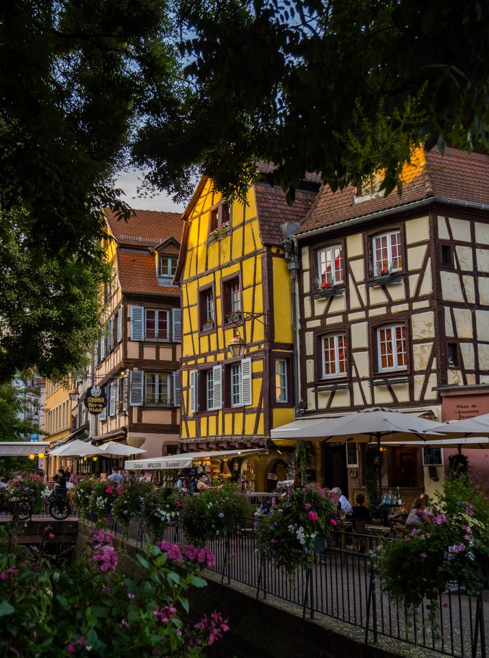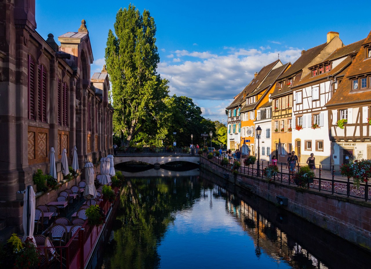 Rzeka przeciska się między wąsko ustawionymi, kolorowymi domami, gdzieniegdzie poprzecinana jest mostkami, a miejsca gdzie niegdyś handlowano rybami i innymi towarami służą dziś mieszkańcom i turystom – można trafić na restauracje z klasycznymi flammkuchen jak i takie rekomendowane przez Przewodnik Michelin oferujące kuchnię bardziej wysublimowaną – dodatkowo, trzy gwiazdkowane restauracje Michelina znajdziecie bliżej centrum.